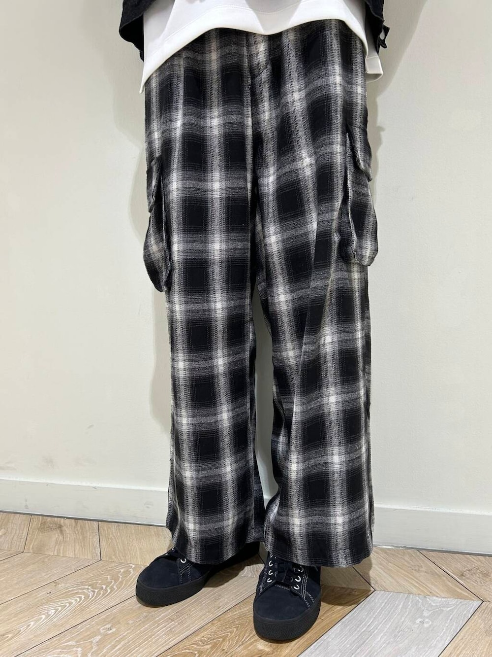 こちらのチェックのカーゴパンツは肌触りが柔らかく、ポケットも付いているので機能性も優れています!