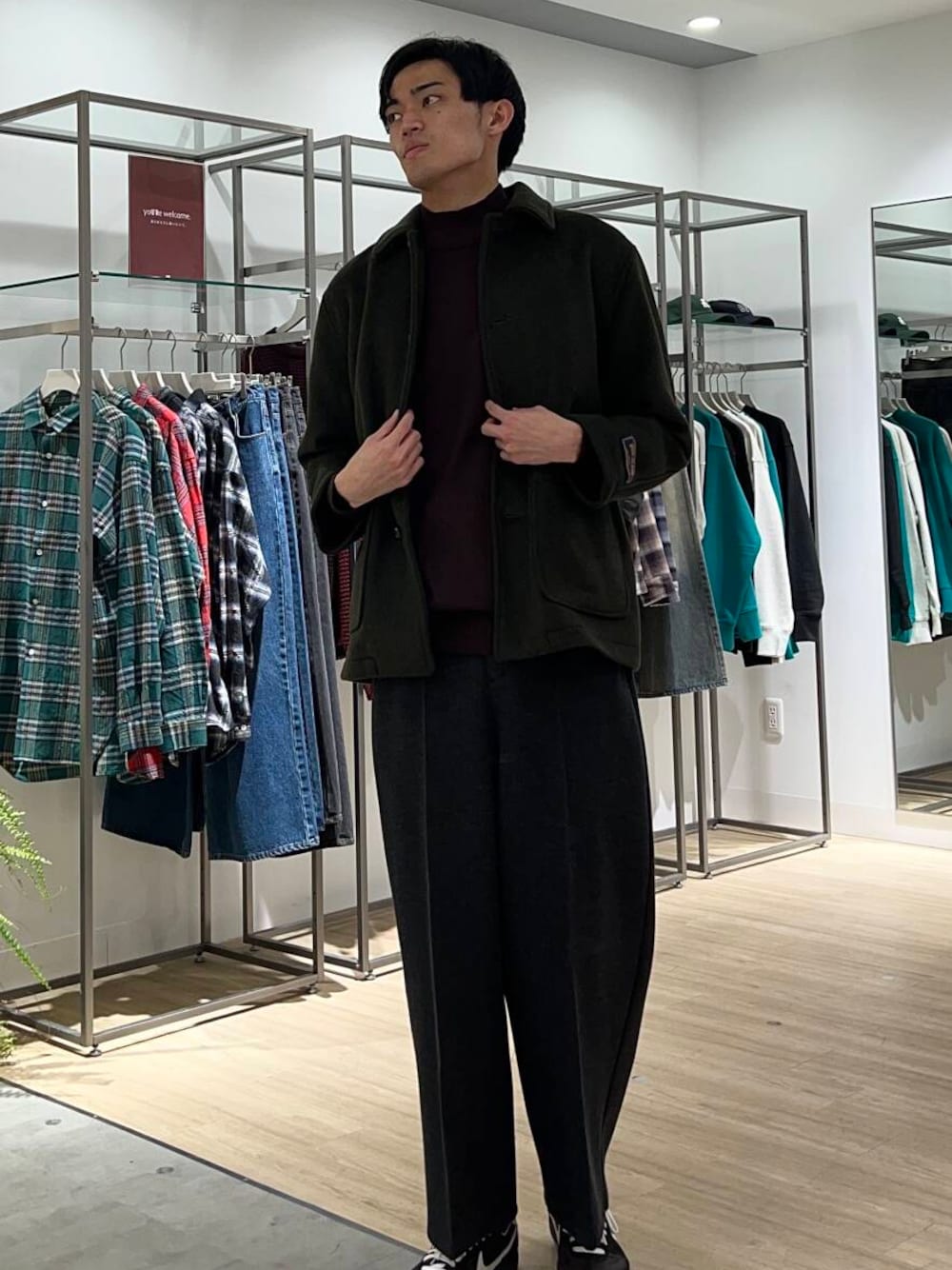 今回はショートコートとハイネックのニットを使ってシックなコーディネートを組んでみました🎩