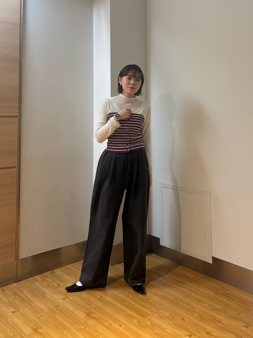 ビスチェはタートルに合わせてもシャツに合わせてもかわいいです♡