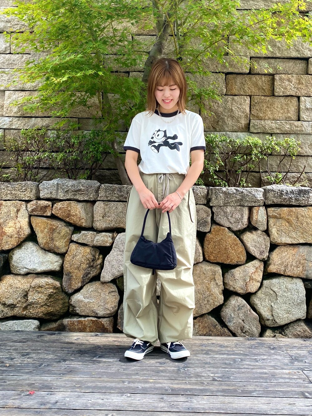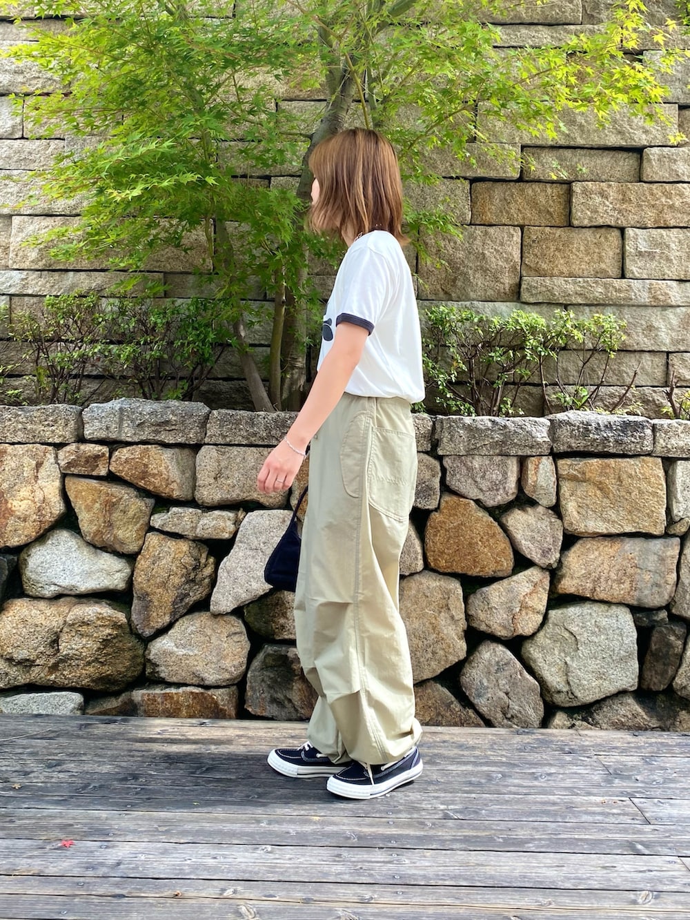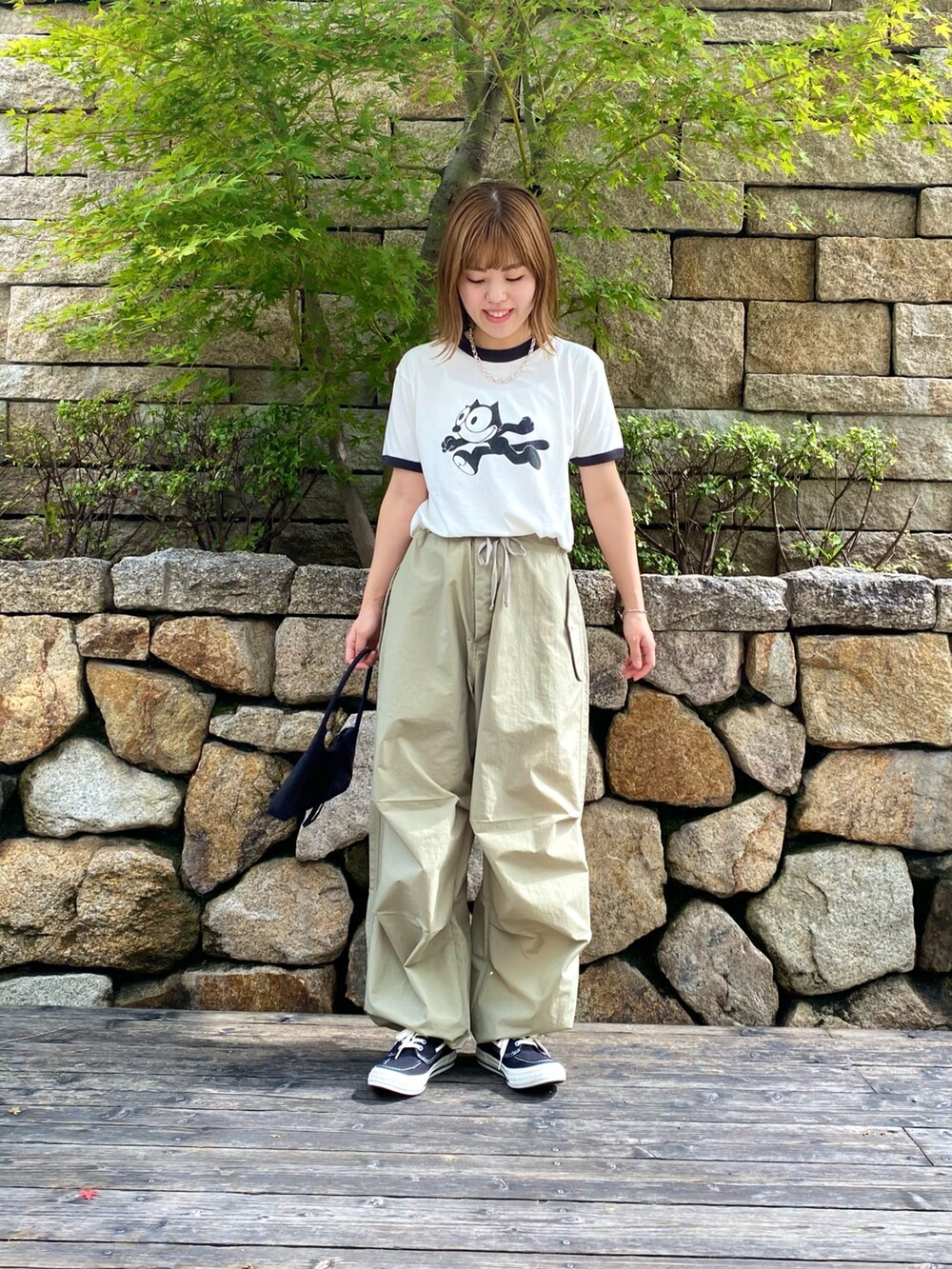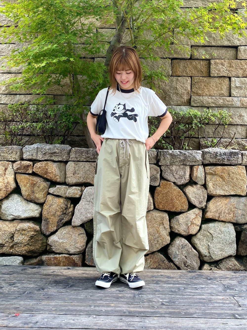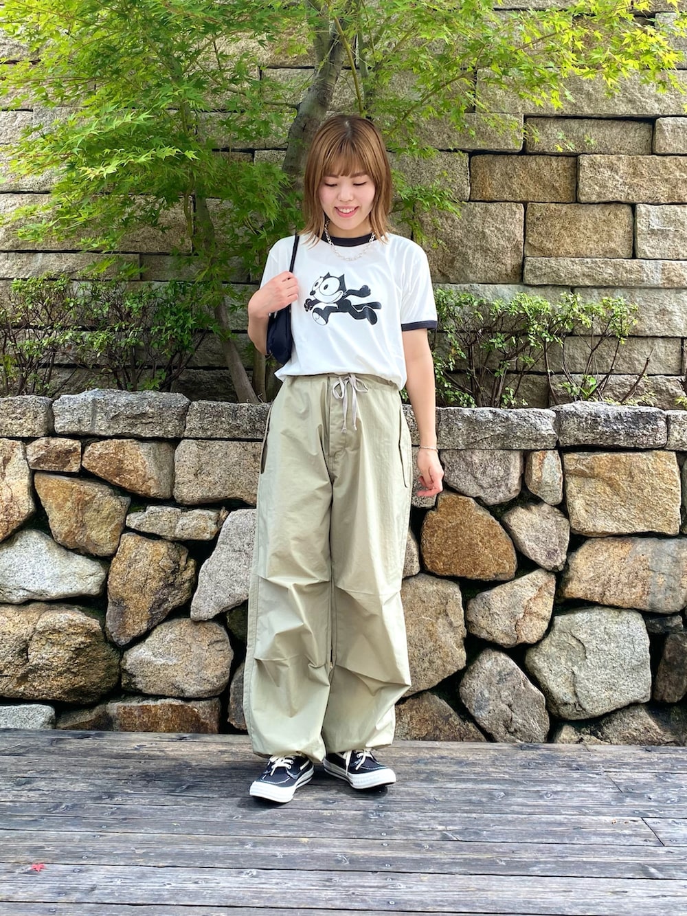 パラシュートパンツを合わせてカジュアルな印象に🌟