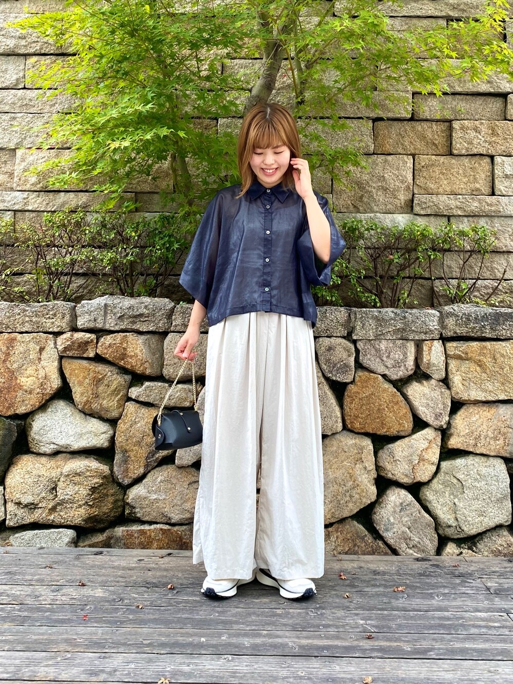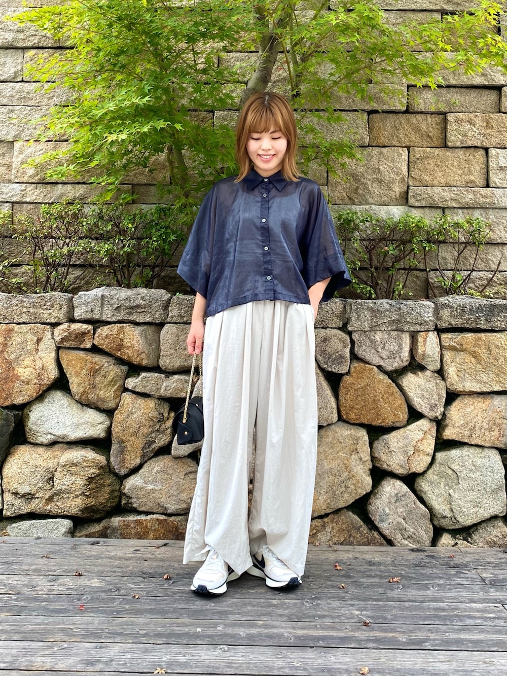 ギャザーワイドパンツはシャツとの相性も抜群です!