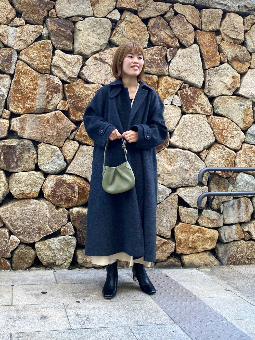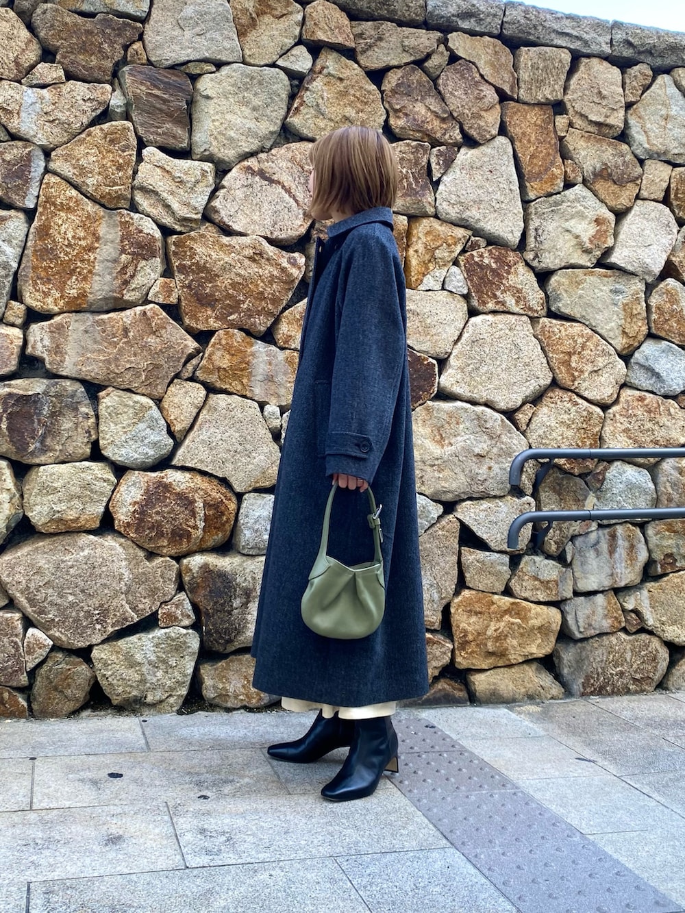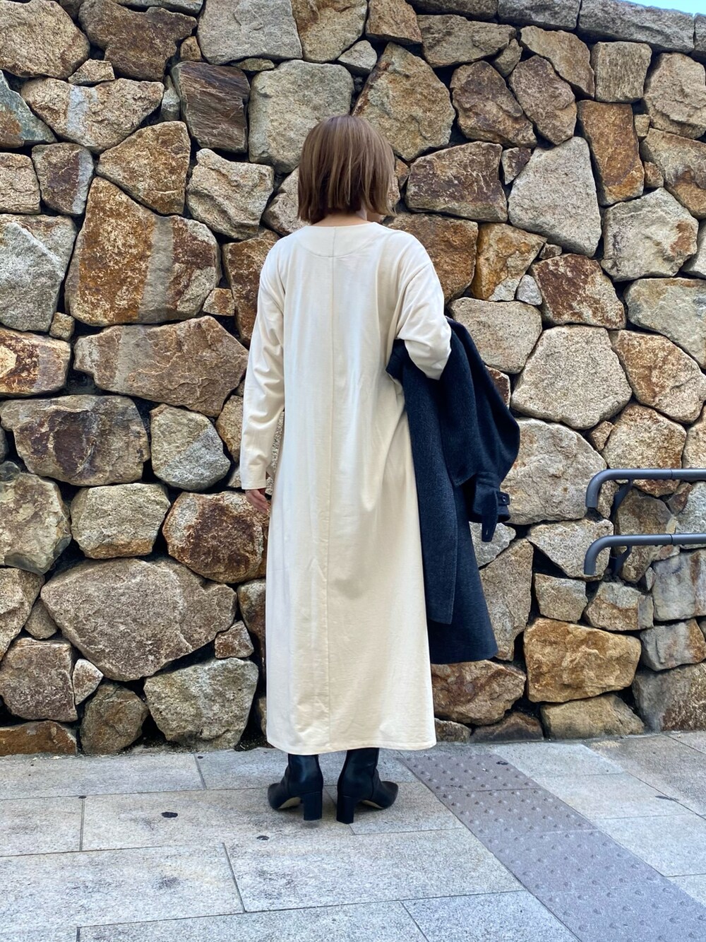 前後どちらから見ても綺麗なシルエットのアウターです。