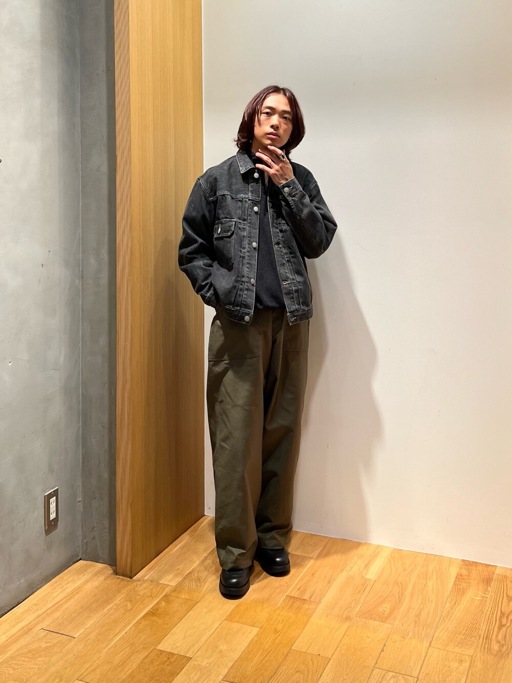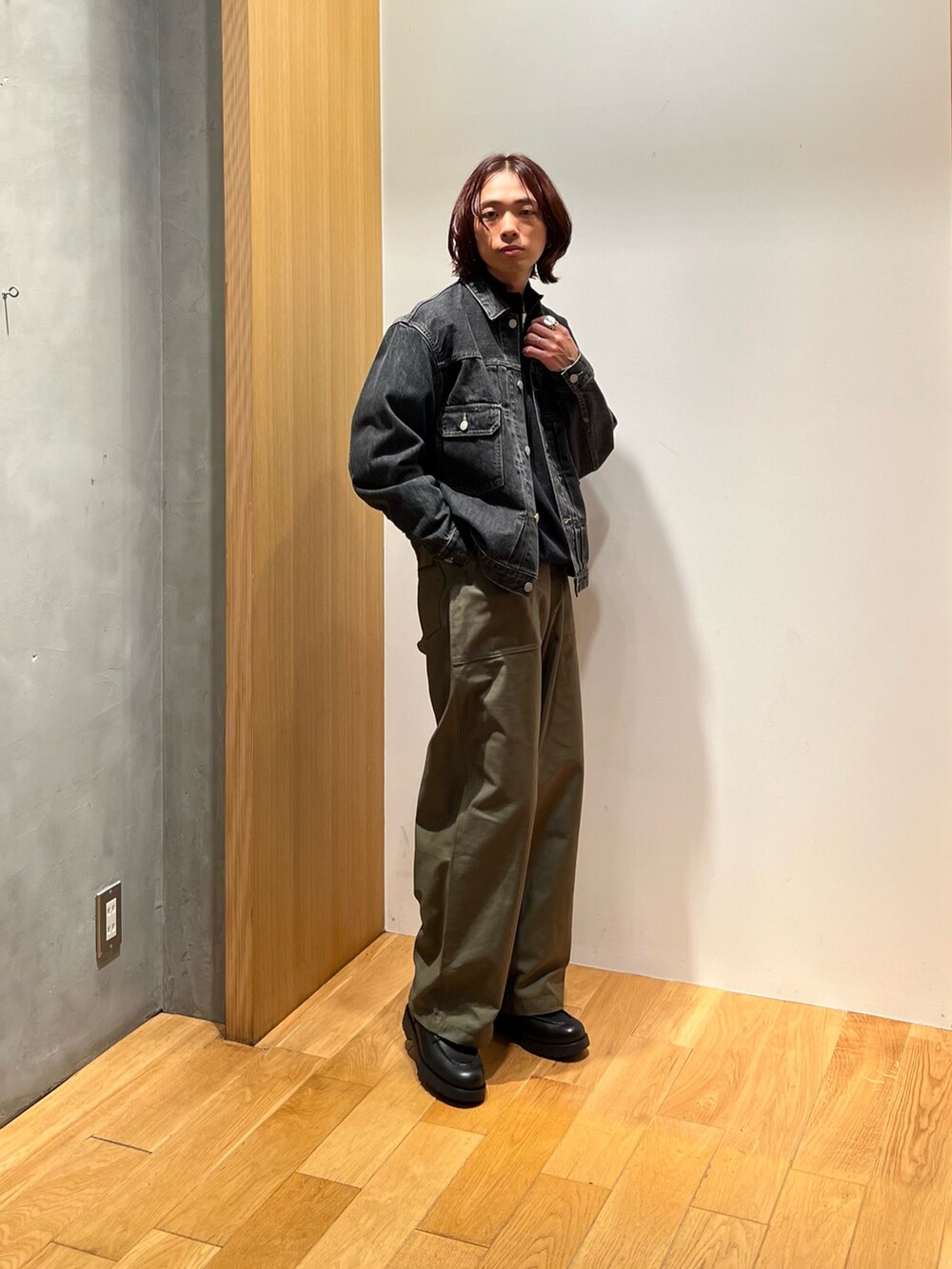 デニムジャケット×ベイカーパンツのカジュアルなアイテムも、色使いで大人な印象に✨