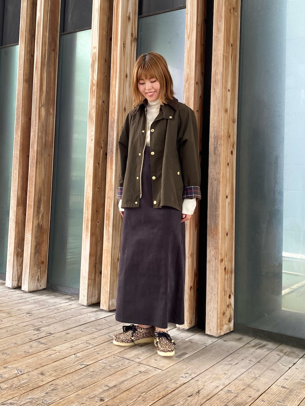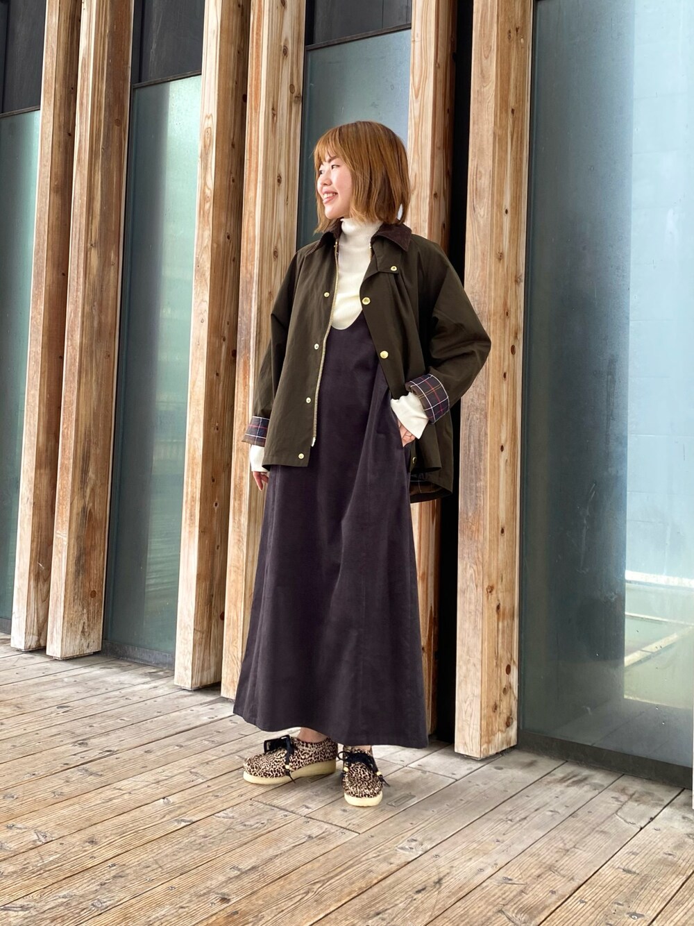 Uネックコーデュロイジャンパーワンピースを合わせて