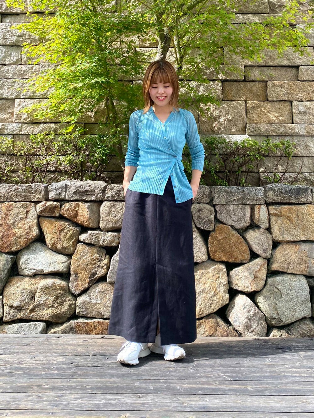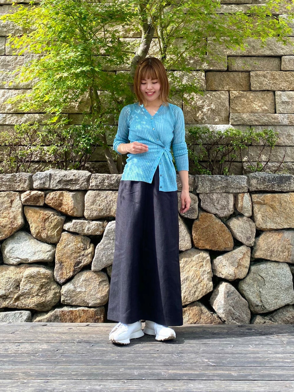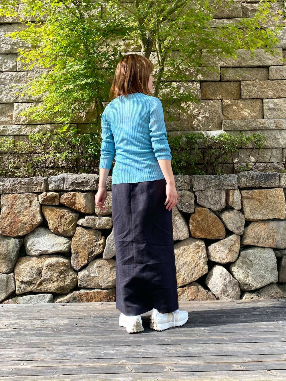 リネントラペーズスカートを合わせて