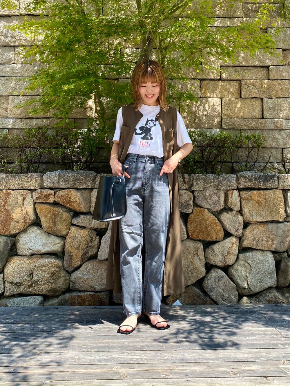 Tシャツを合わせたカジュアルスタイルは