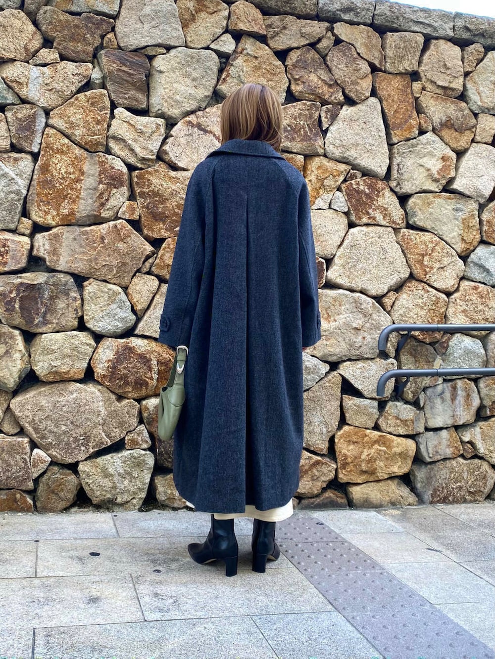 前後どちらから見ても綺麗なシルエットのアウターです。
