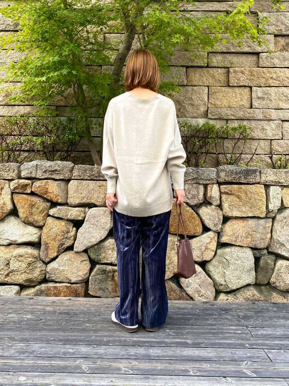 深めのVネックなので大人っぽく着こなせます。