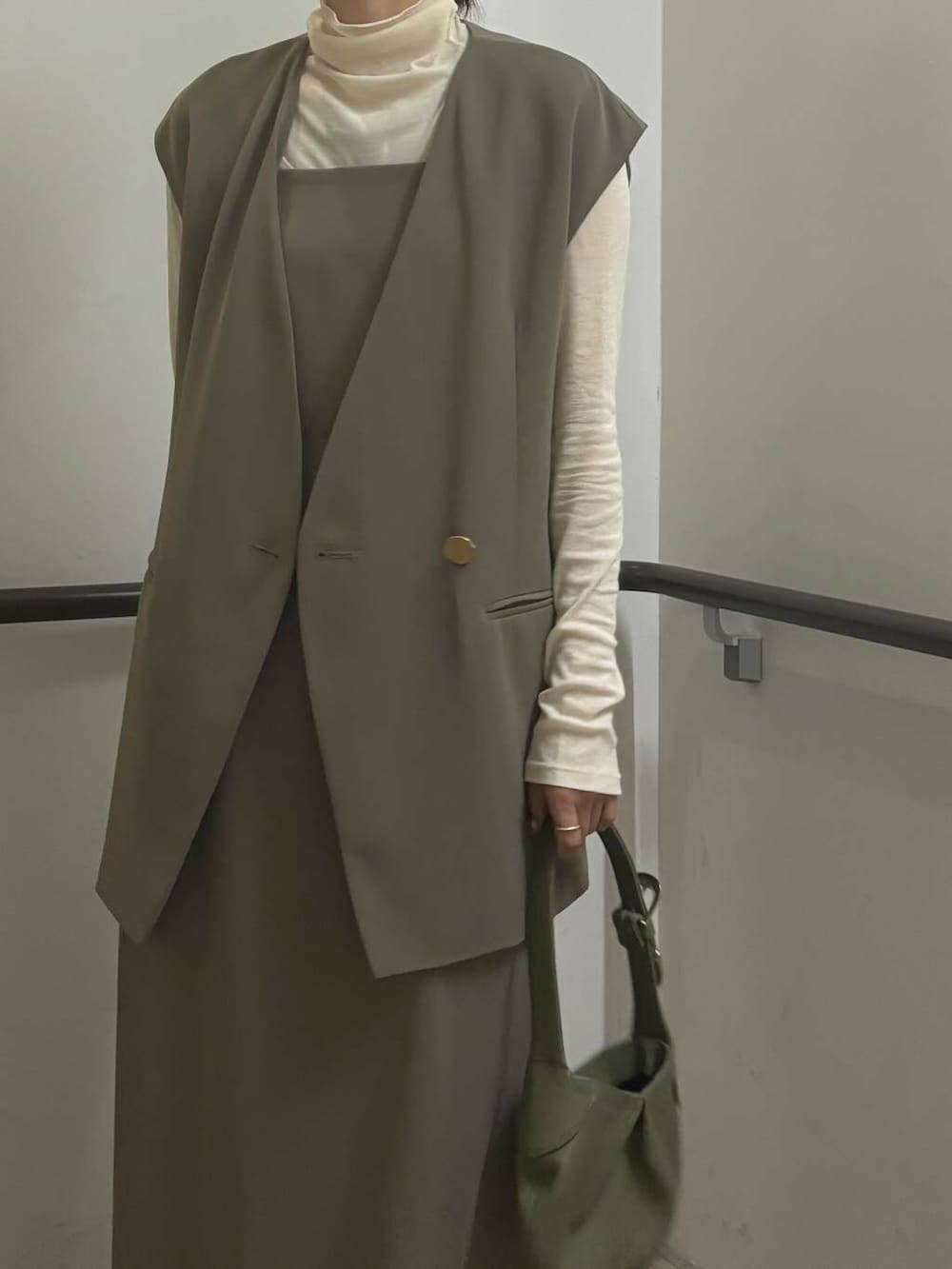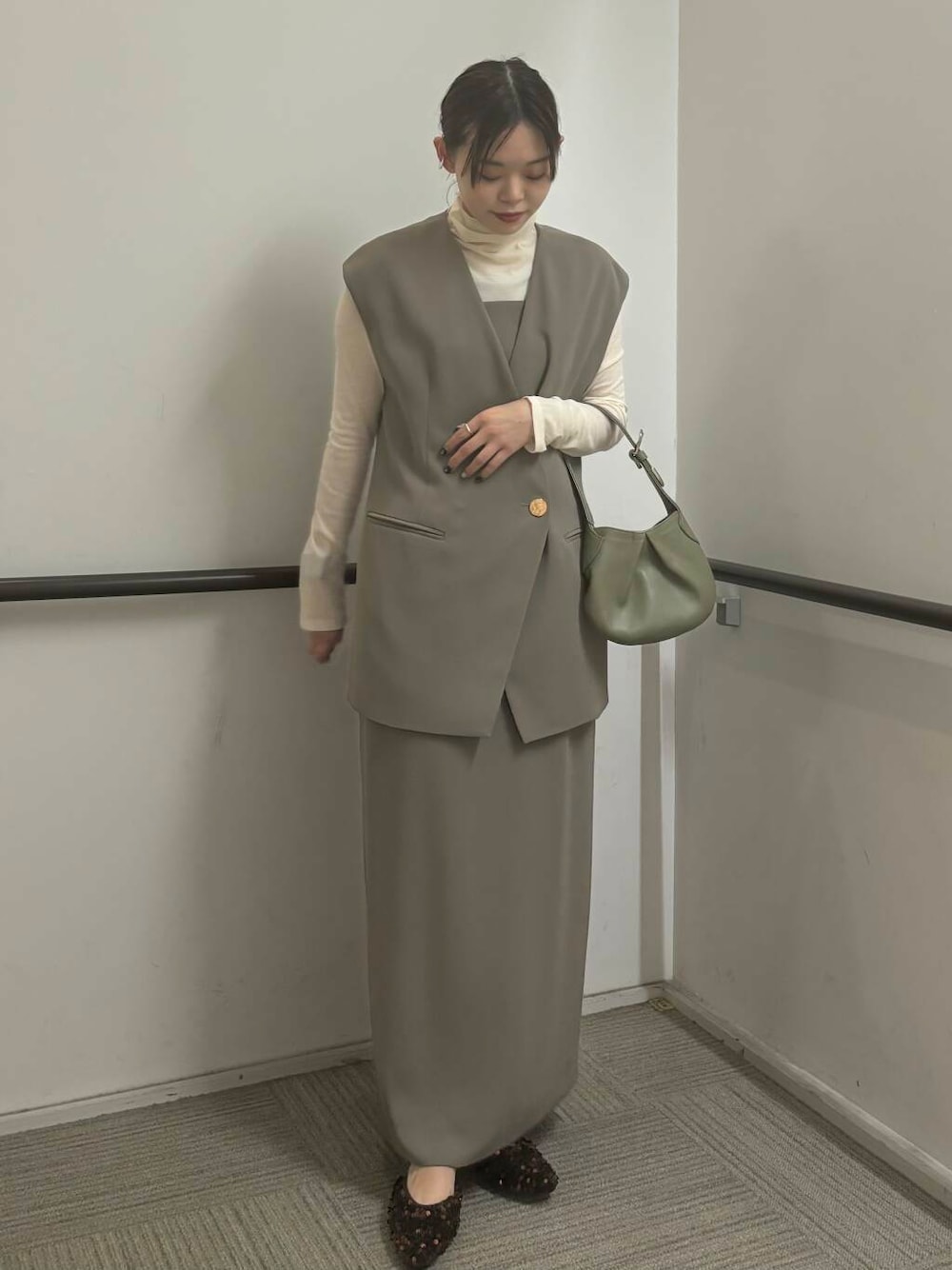 ベストでデニムと合わせたり、ワンピースでシアートップと合わせたり、一つのアイテムで何着も組むことができるセットアップです!