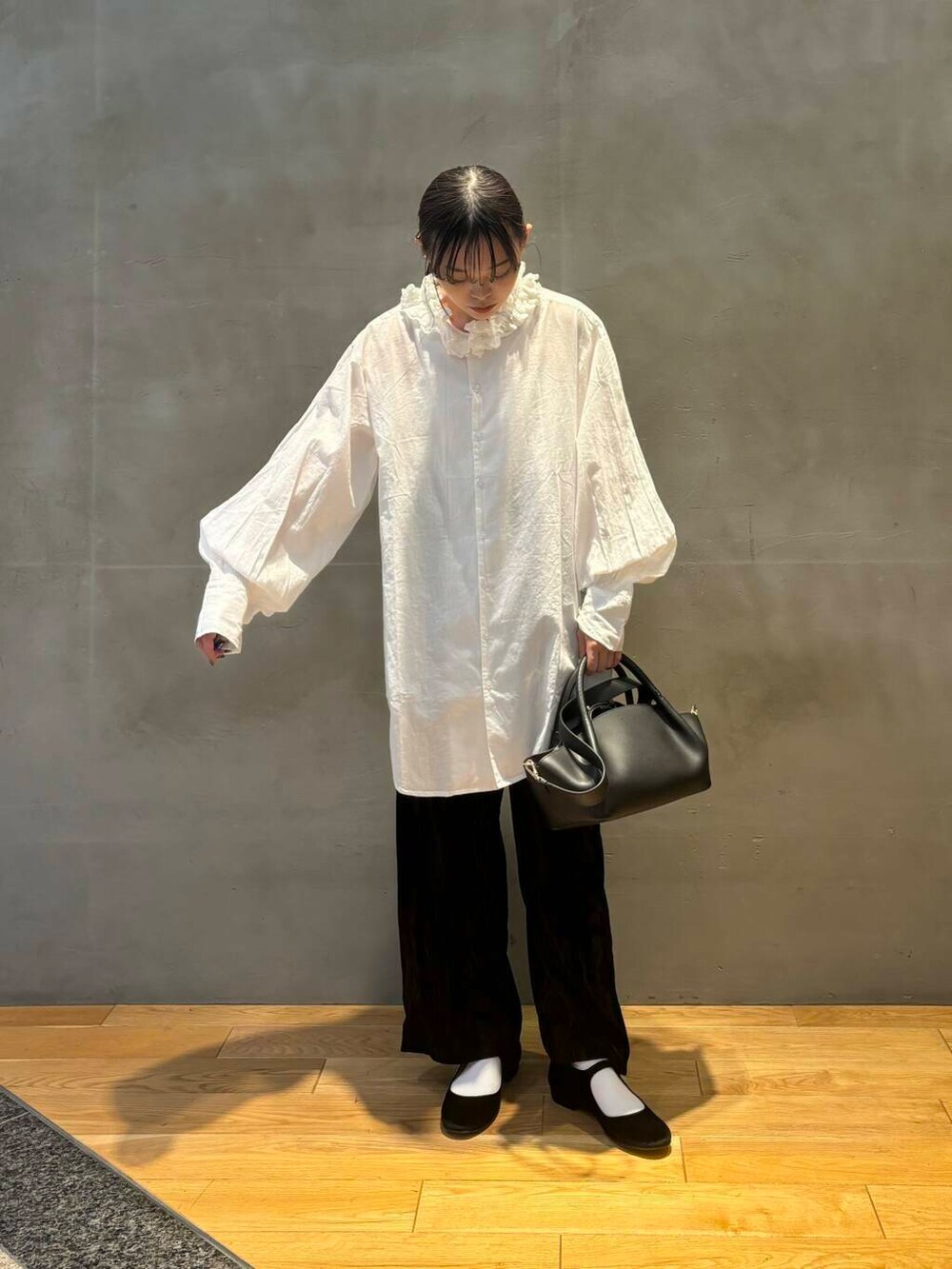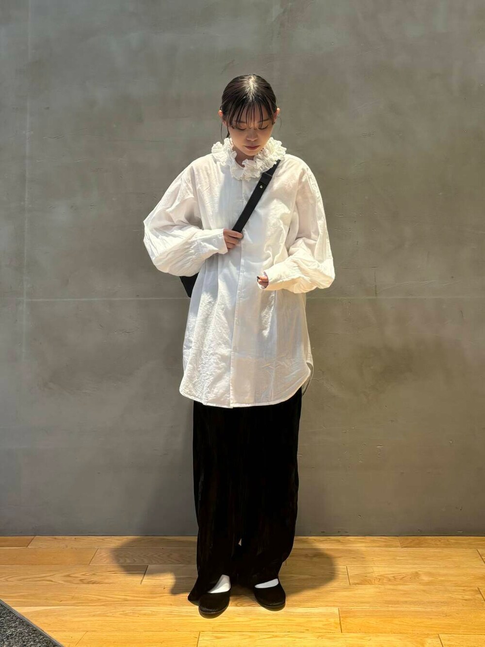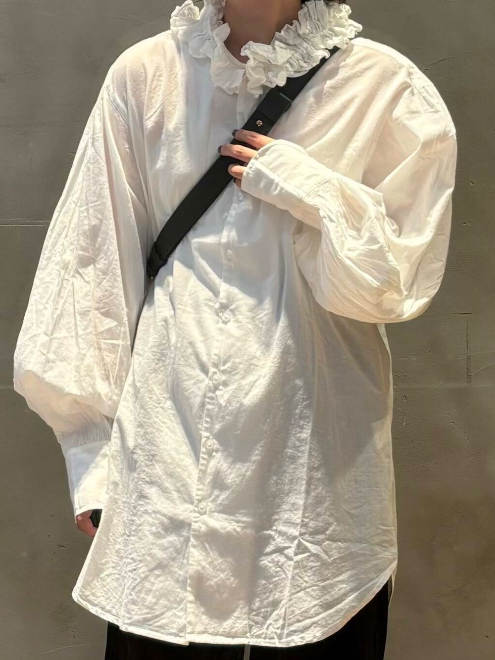 crinkle crinkle crinkleのホワイトシャツはボリュームのある首元のフリルが特徴で、この1枚で主役になります🤍