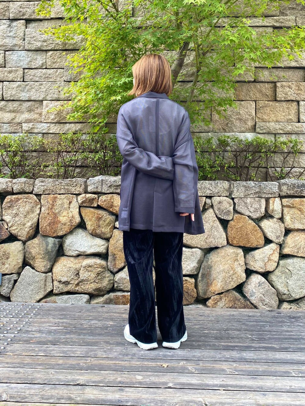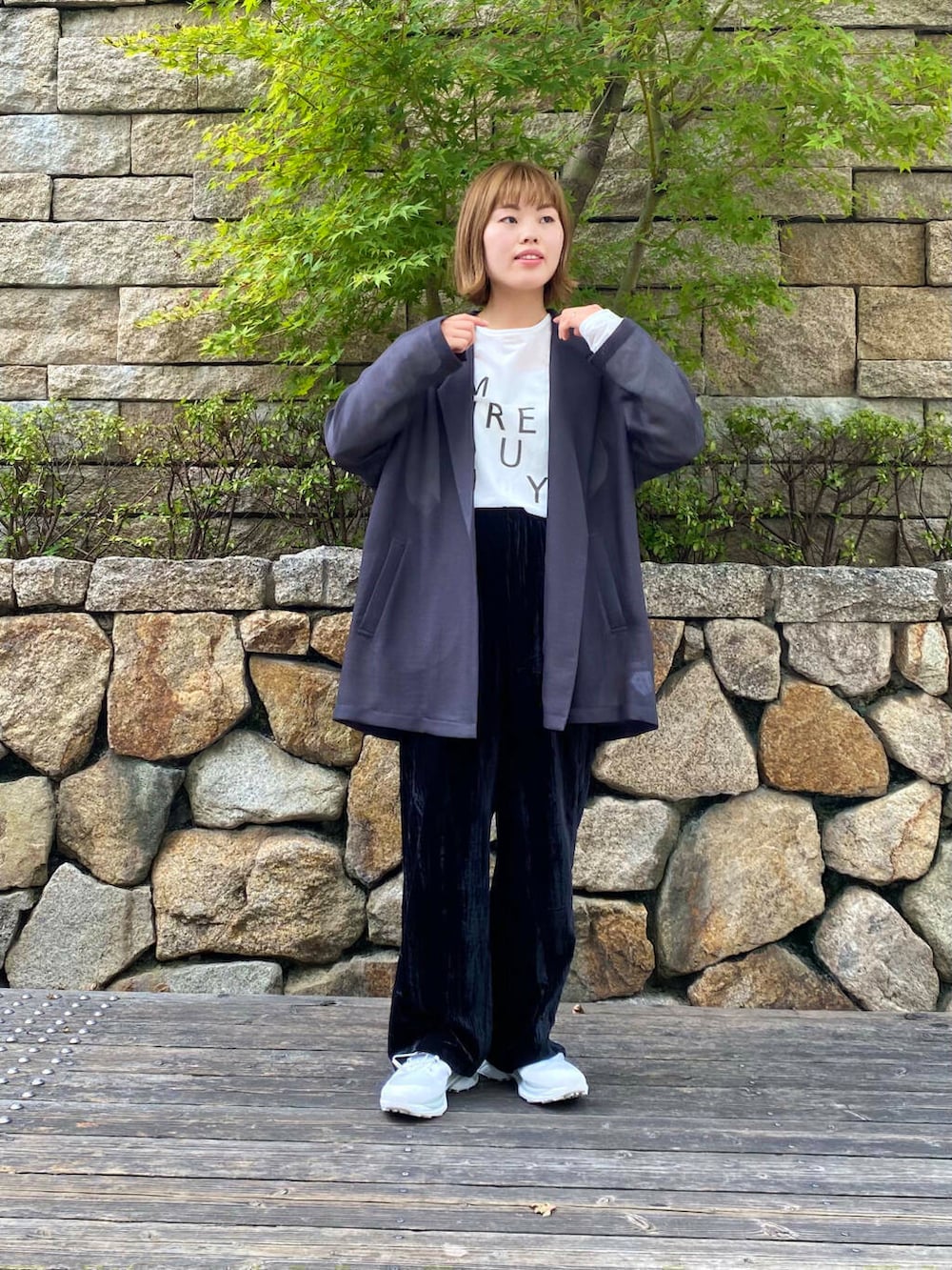 クラッシュベロアイージーパンツは合わせるだけで