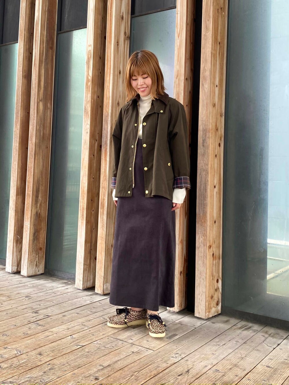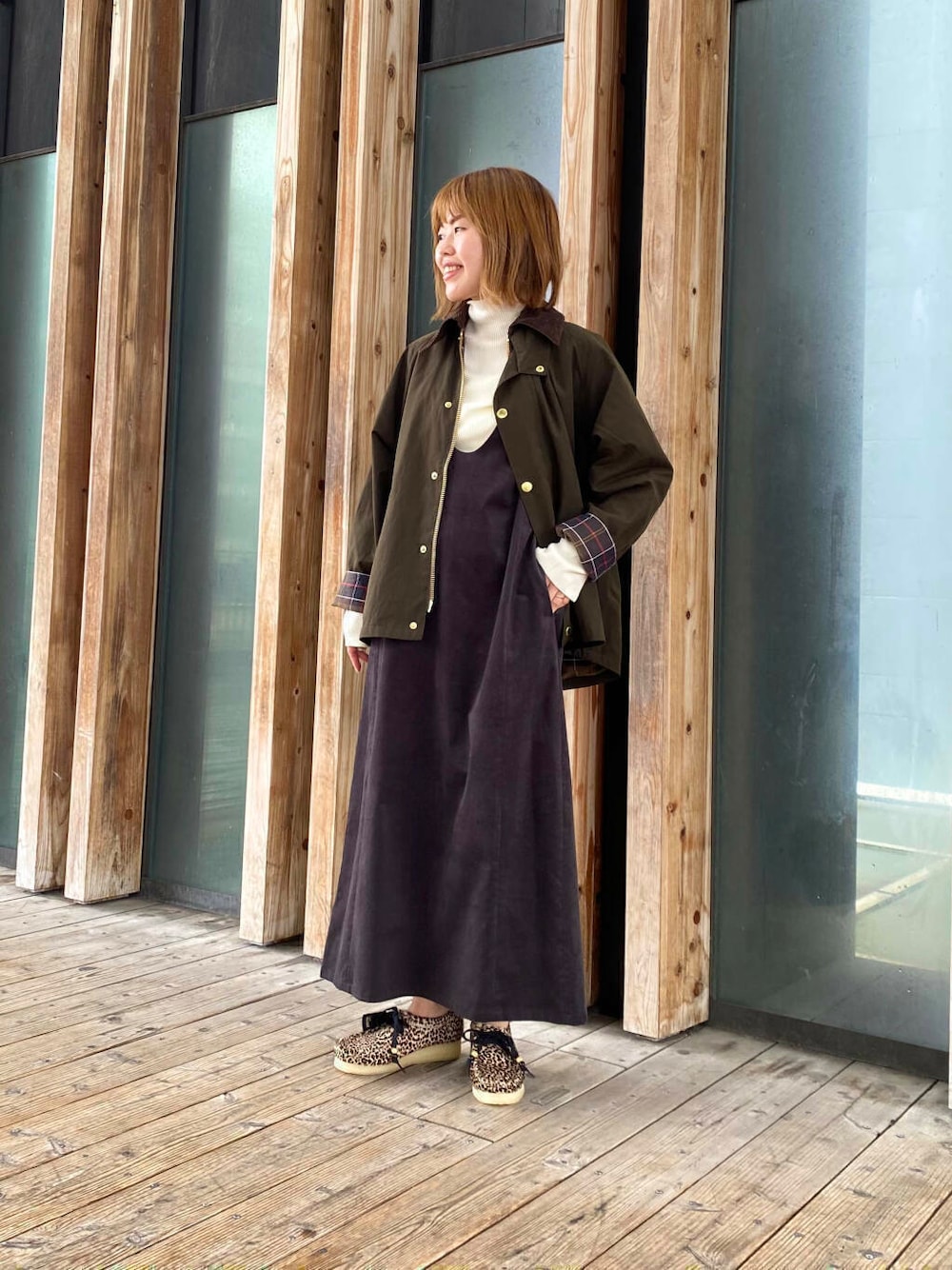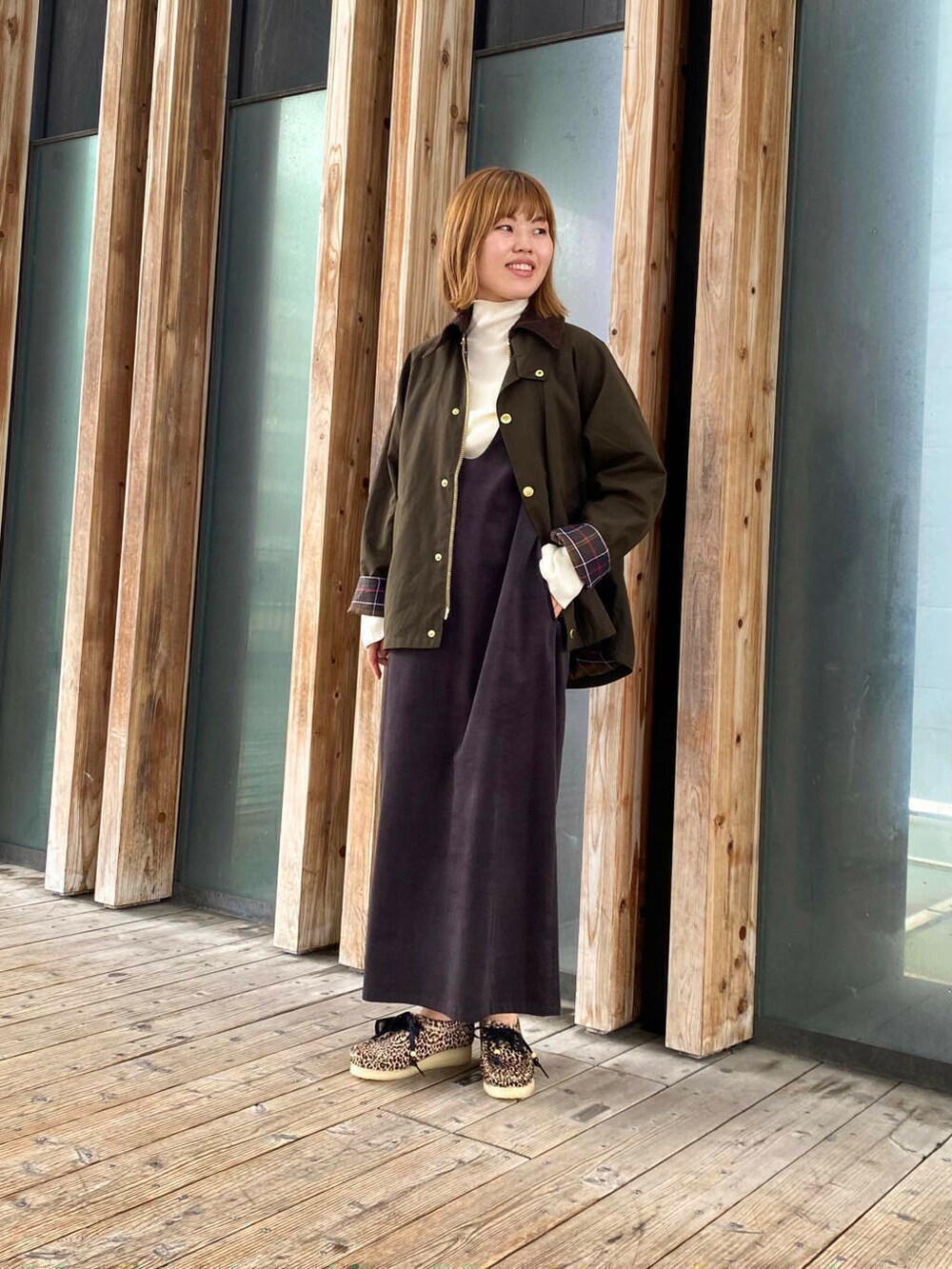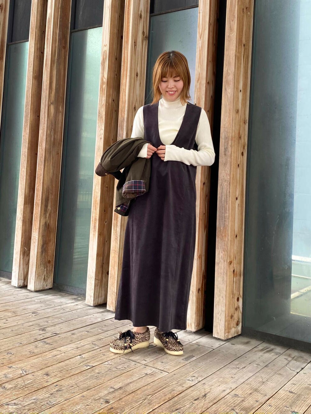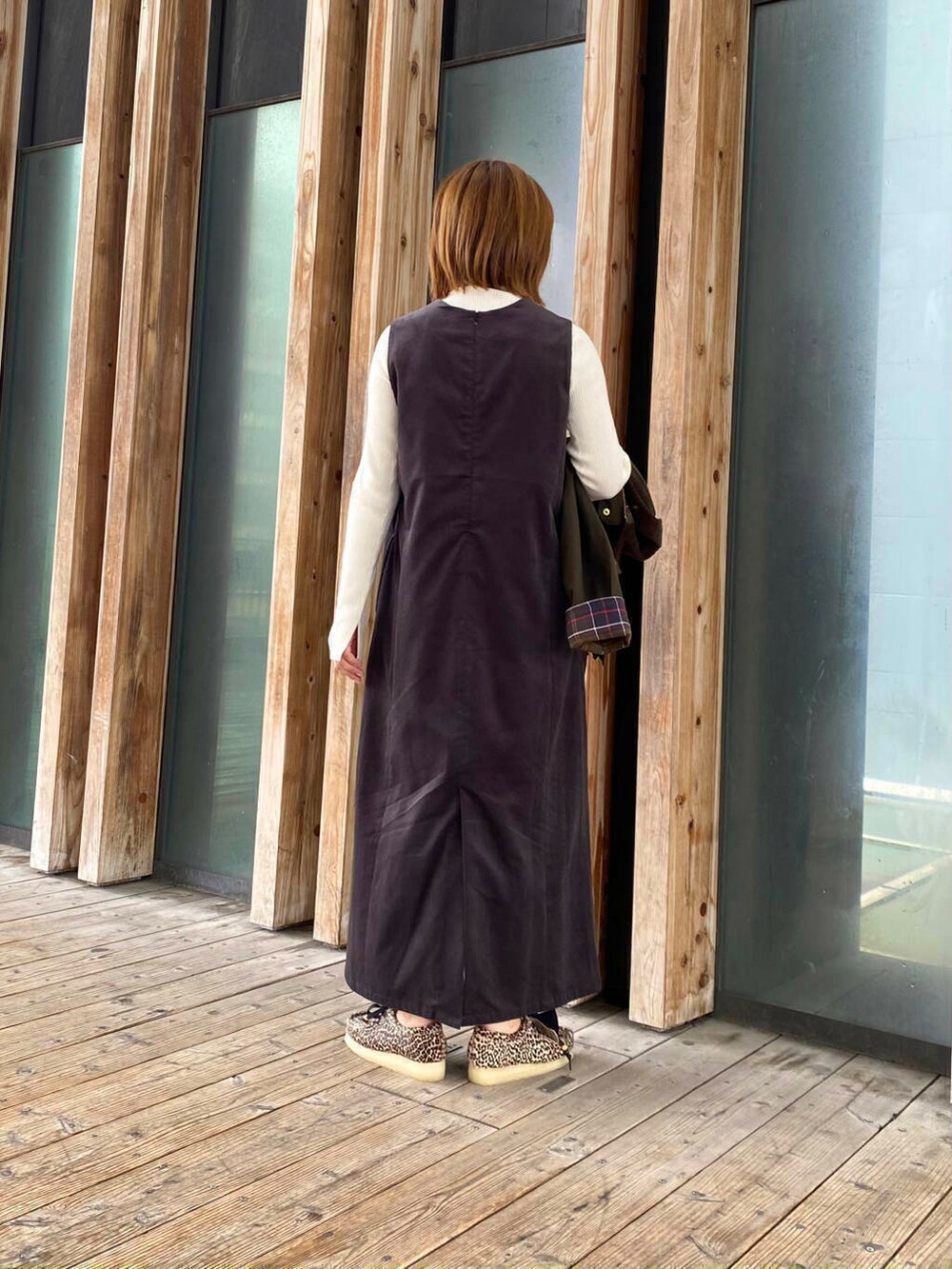 Uネックコーデュロイジャンパーワンピースを合わせて