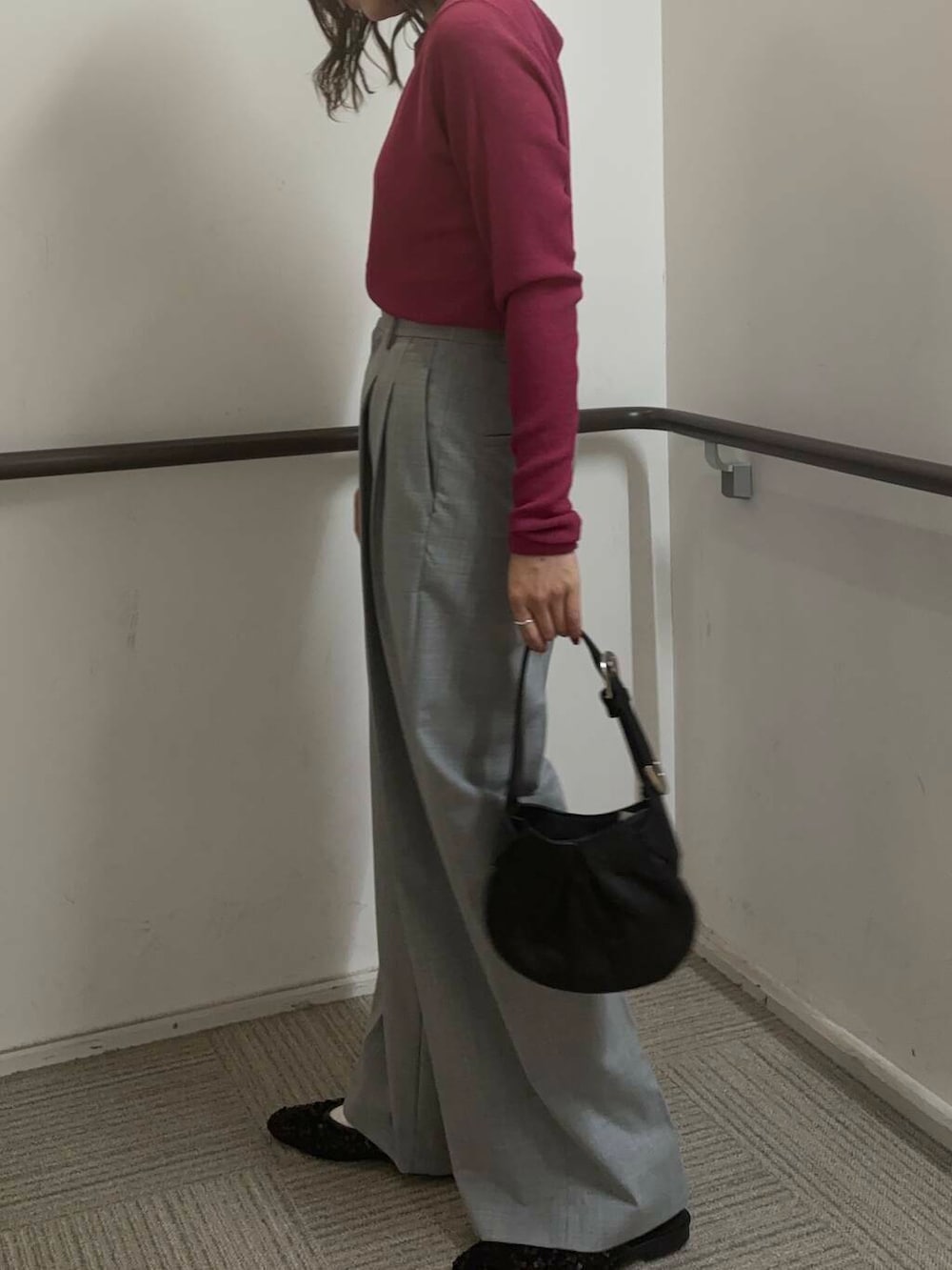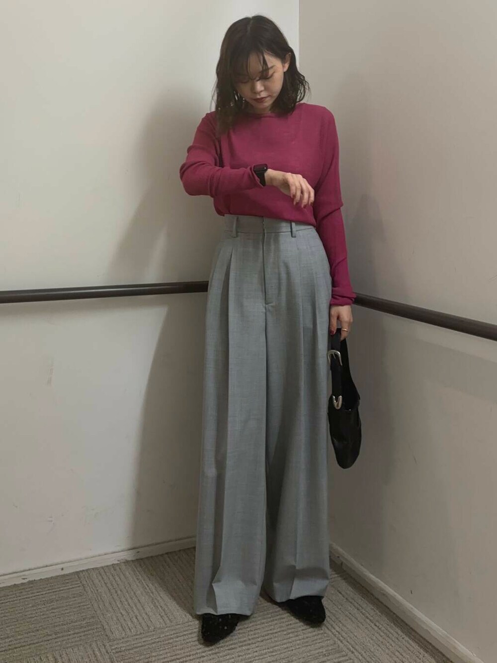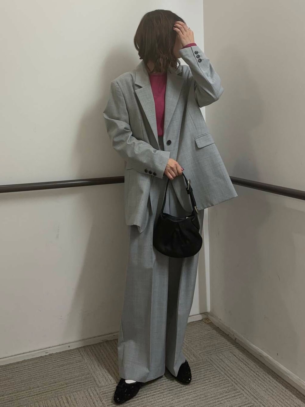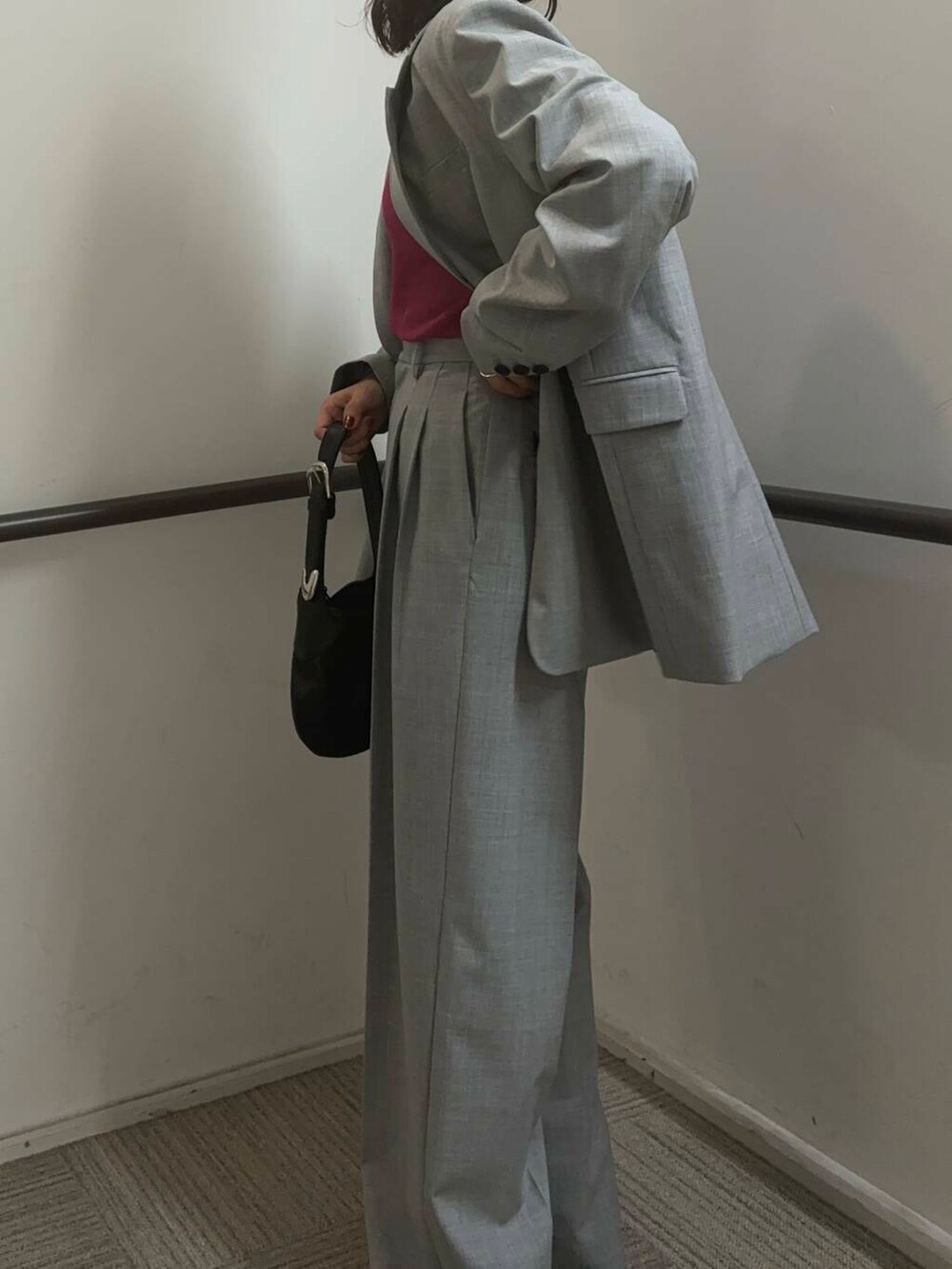 ジャケットは着丈が少し長めなので、お尻周りも隠れてすっきりとした印象になります^^