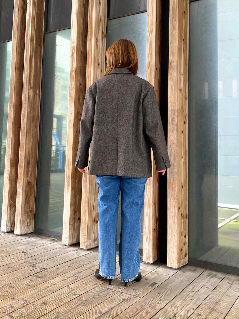 エコウールジャケットは程よいゆとりがあり、