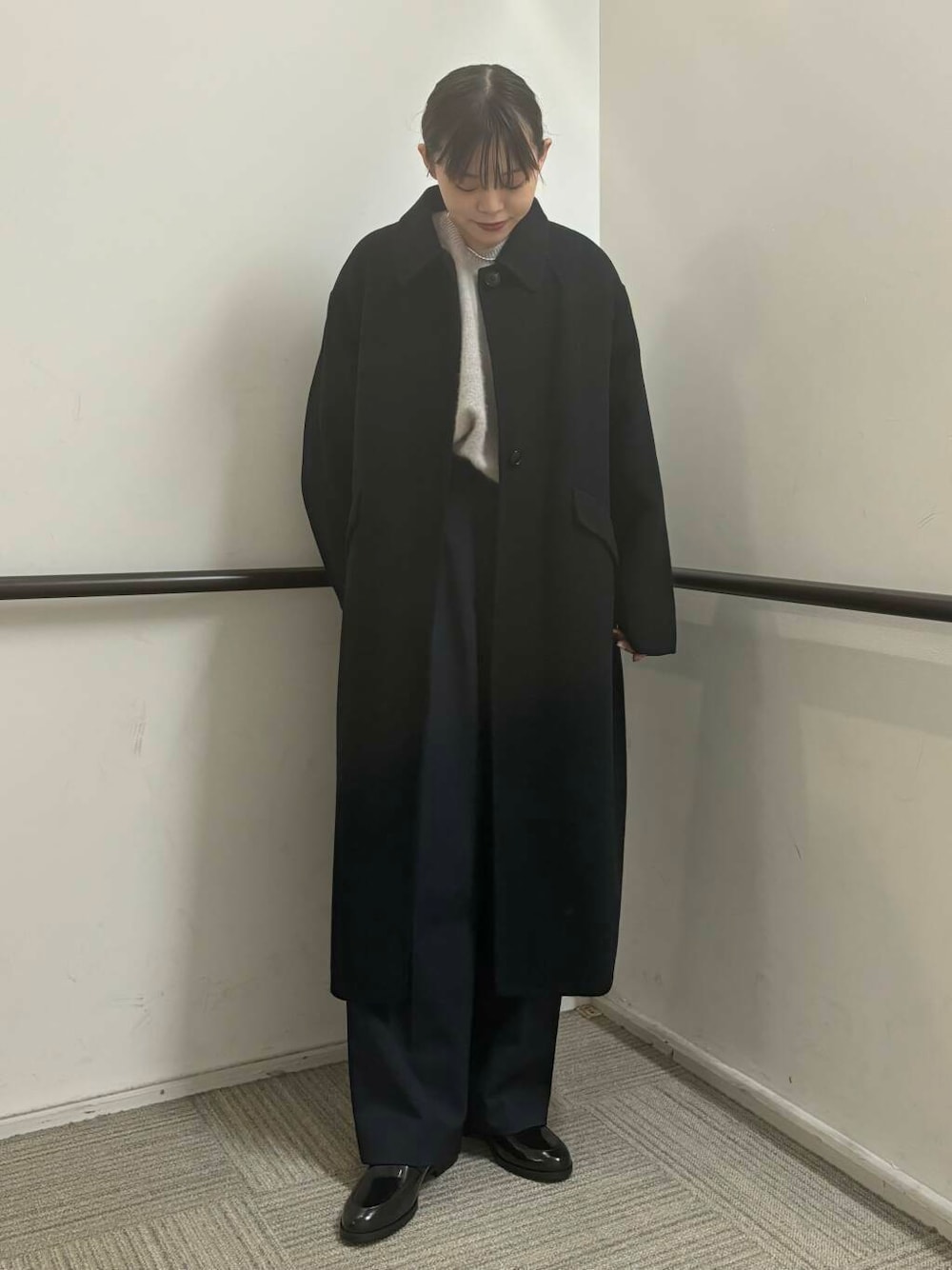 ウール繊維の細かい上質な素材を使用したコートは、ソフトな肌触りに程良くハリを持たせた上品なシルエットになります。