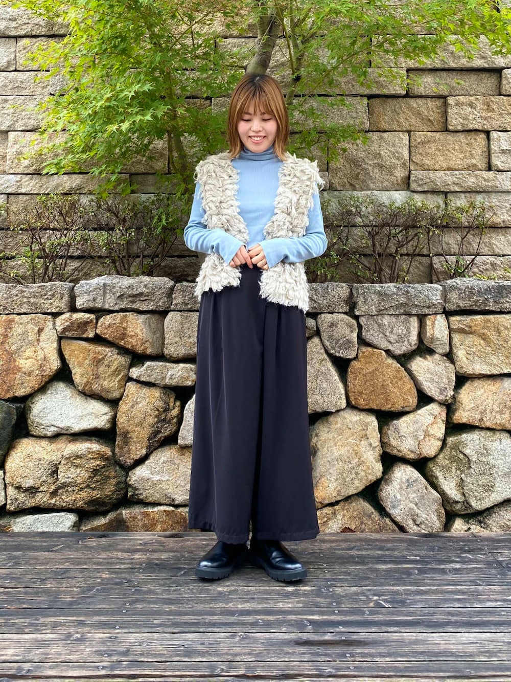 後ろ側がゴムなのでリラックス感のある履き心地です。