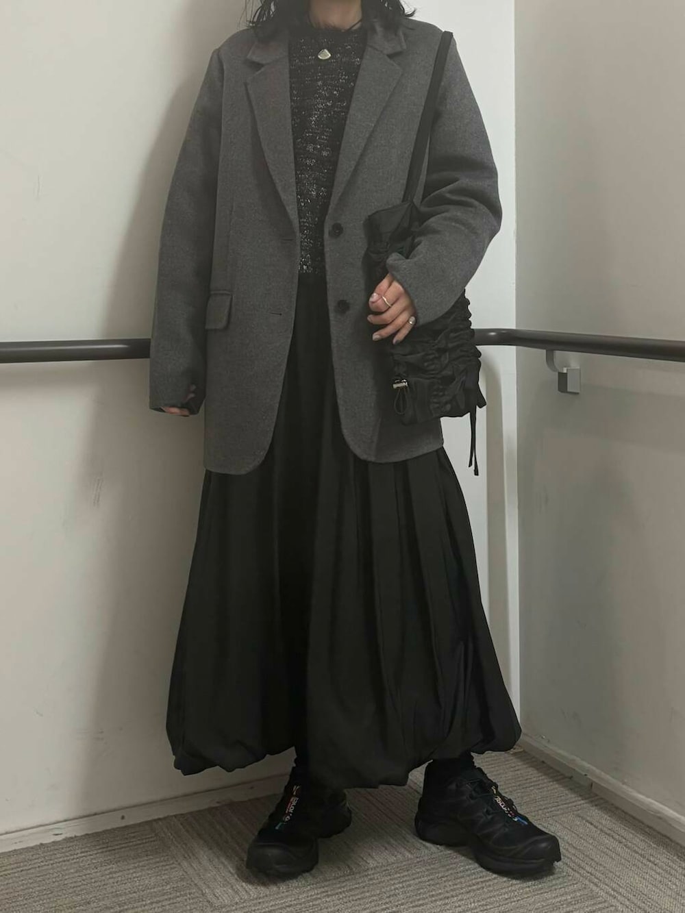 ドッキングバルーンワンピースは一枚でも着ていただけますし、ニットやベストで合わせるのもおすすめです!