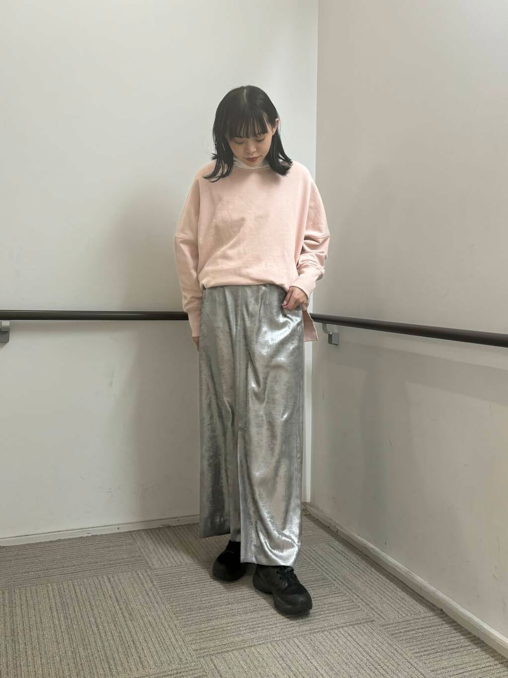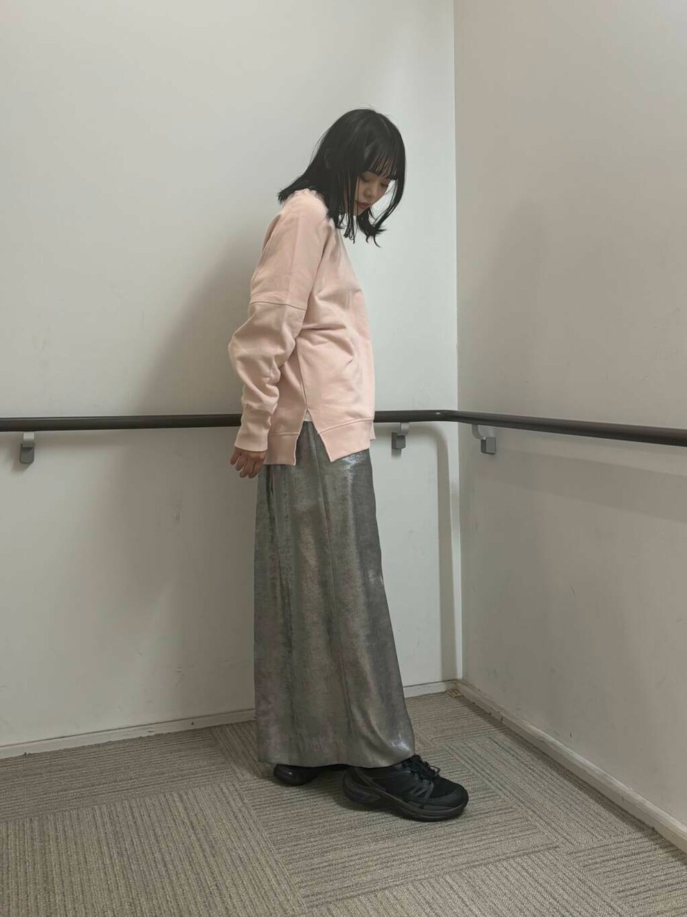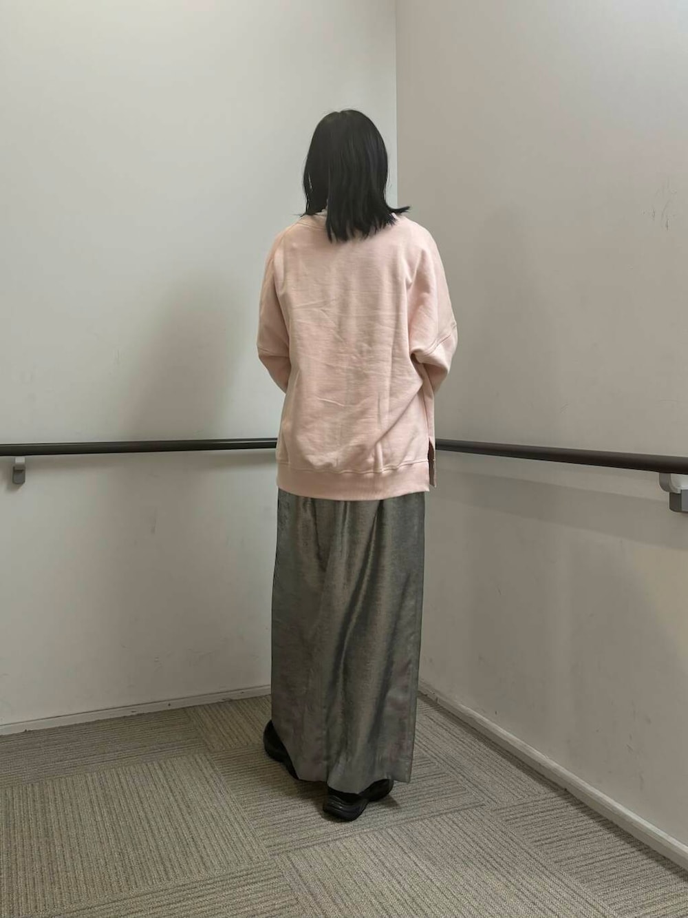 スカートを主役にしたかったので、淡めピンクのスウェットで合わせてみました!