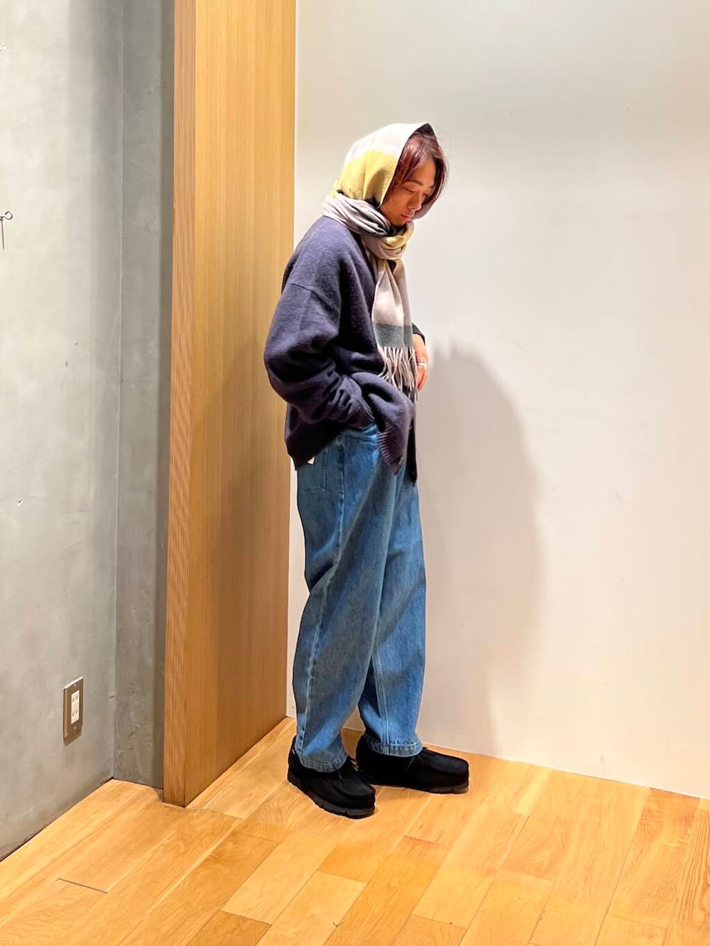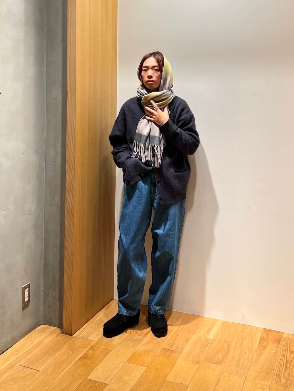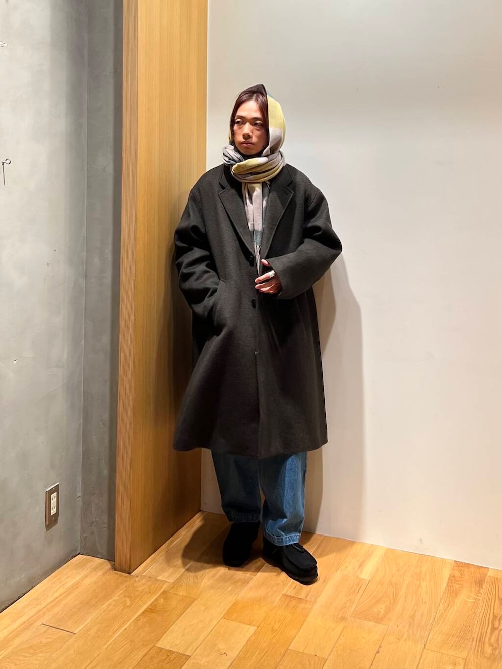 シンプルなコーデには大判ストールのバラクラバ巻きでアクセントを