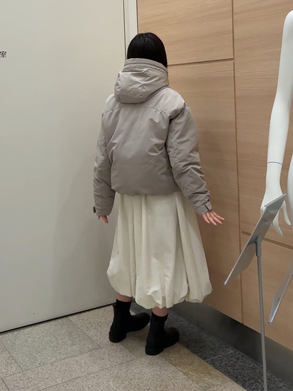 もともとボリュームがあるダウンで丸いシルエットが可愛い。。