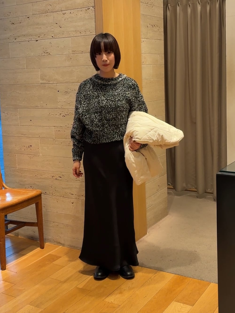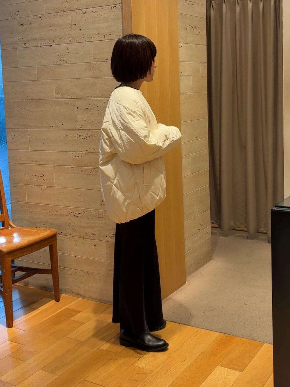コクーンキルティングダウンも横から見た時にしっかり前が短くて後ろはお尻が隠れる長さになっていて助かります〜