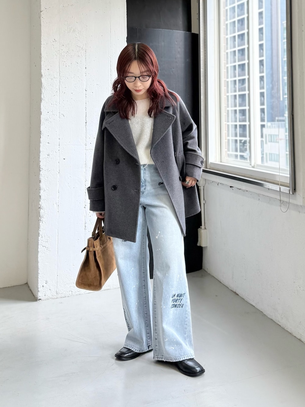 アウターがゆったりしているので、ボトムスはスッキリしたアイテムを合わせるのがお勧めです!