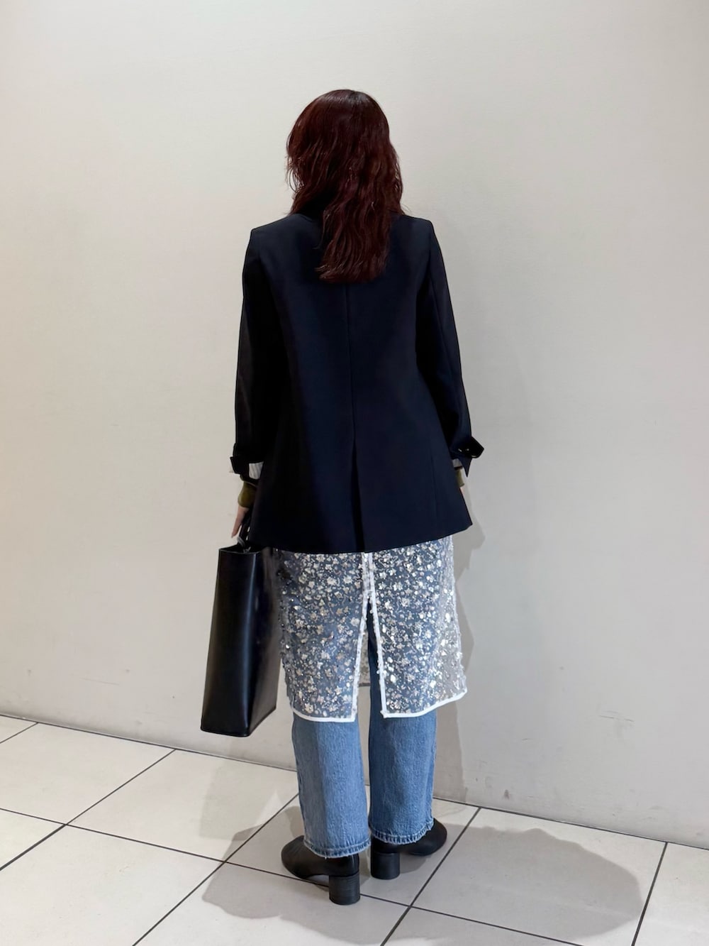 Levi's別注デニムにスパンコールチュールレイヤードスカートを重ねました。