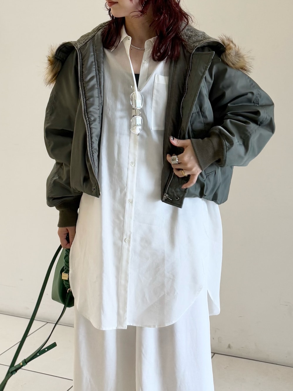 ブルゾンがメインなので、他のアイテムはホワイトでシンプルにまとめました◎