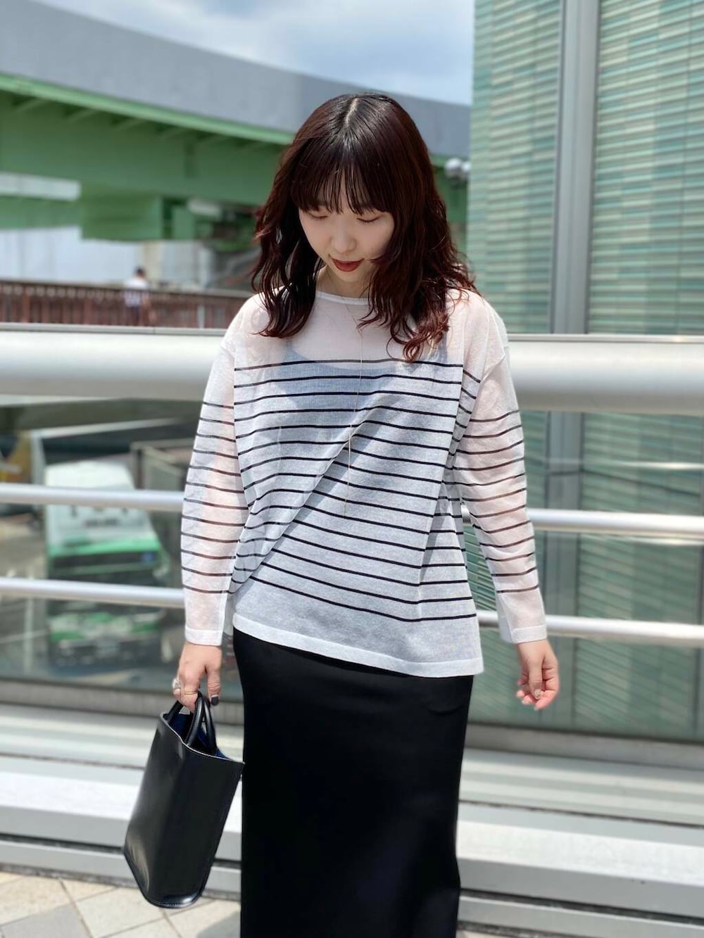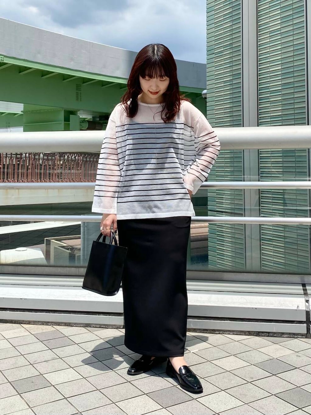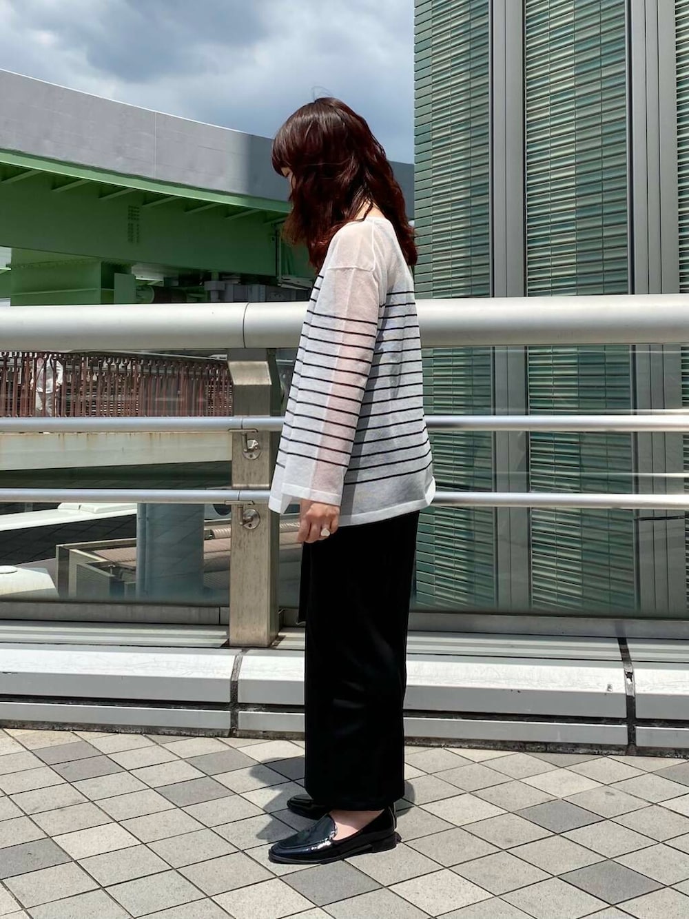 カジュアルなイメージのボーダーもシアー素材だと抜け感もあって◎