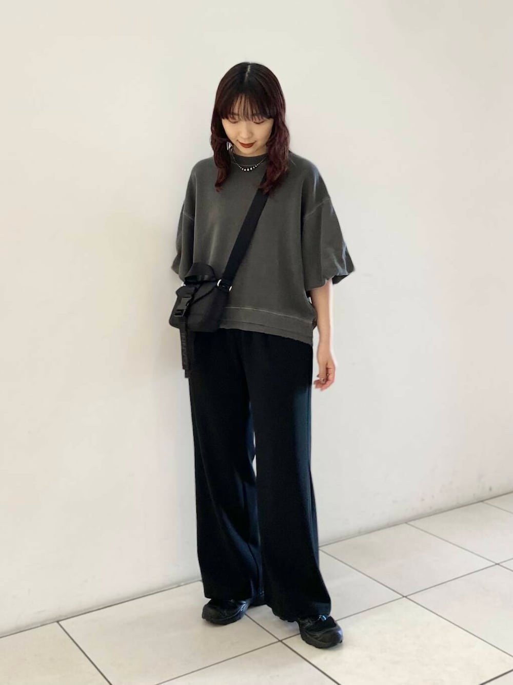 ウエストゴムでとても楽に履いて頂けますが、オンオフでも使える綺麗なシルエットのアイテムです🙆♀️