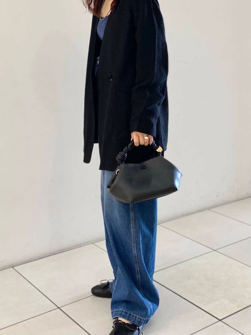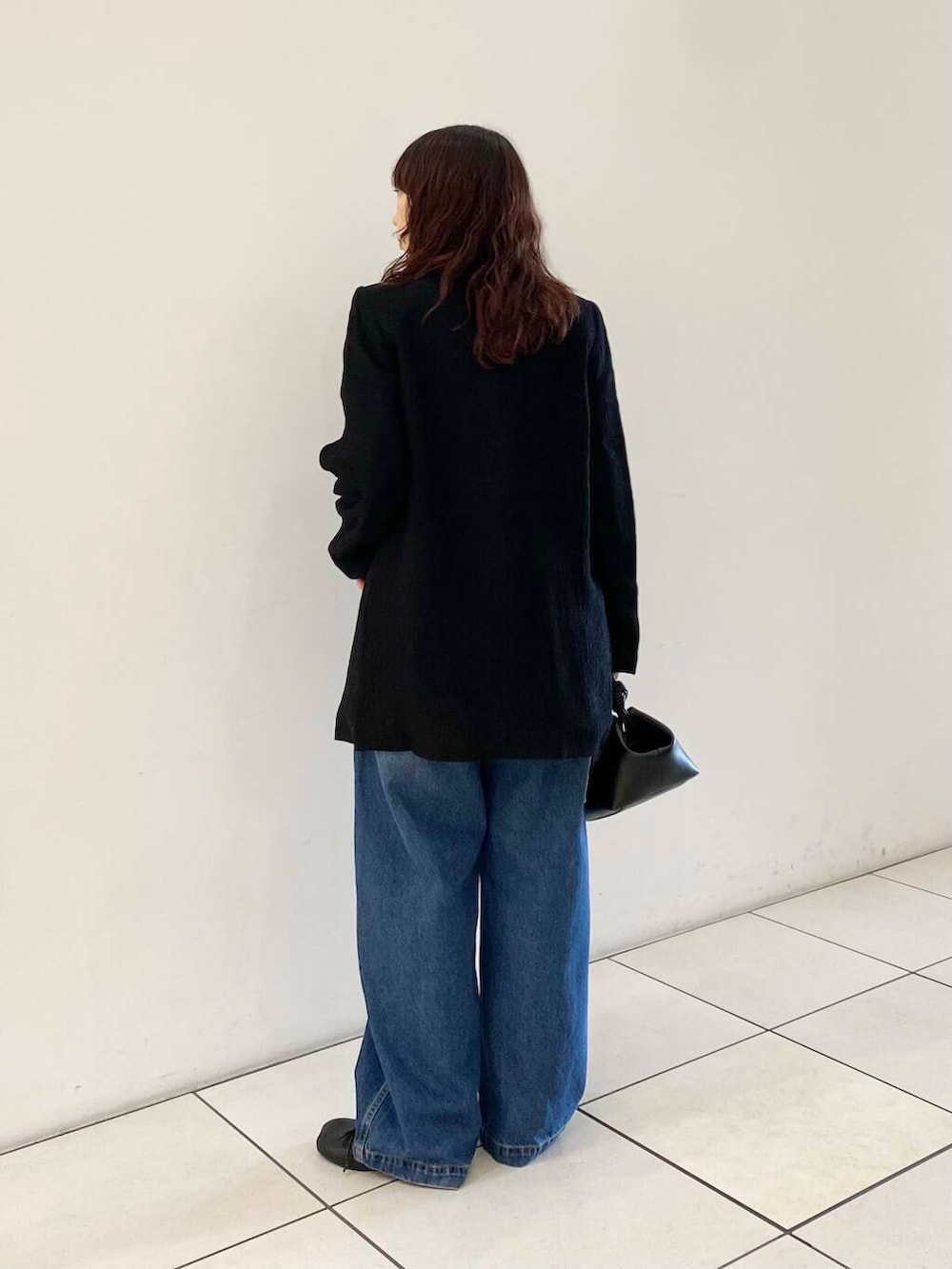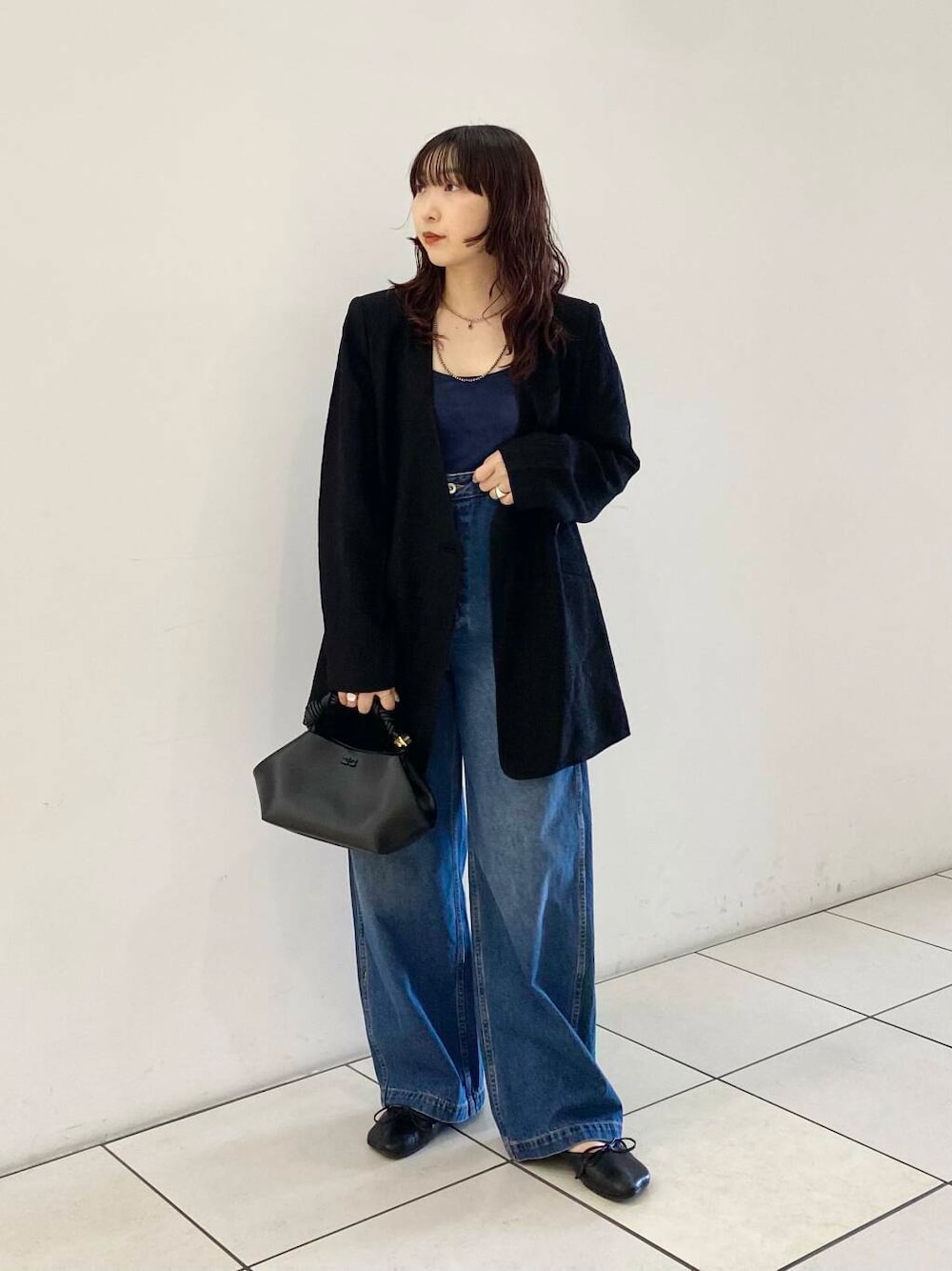 ジャケットがラフな印象になるように、カジュアルなシルエットのデニムを合わせました。