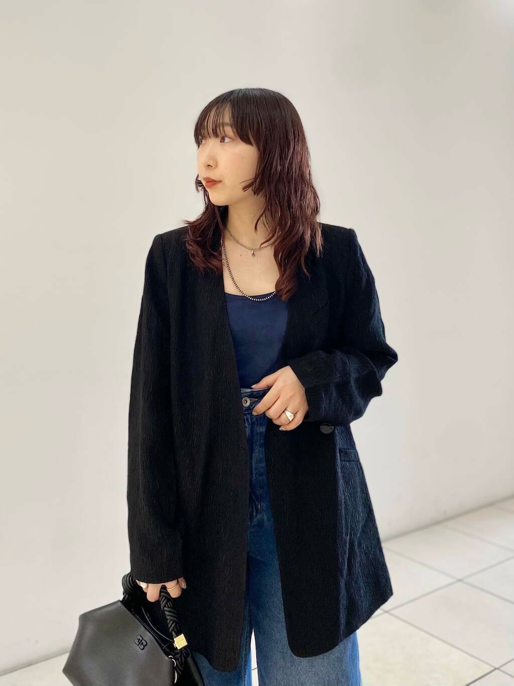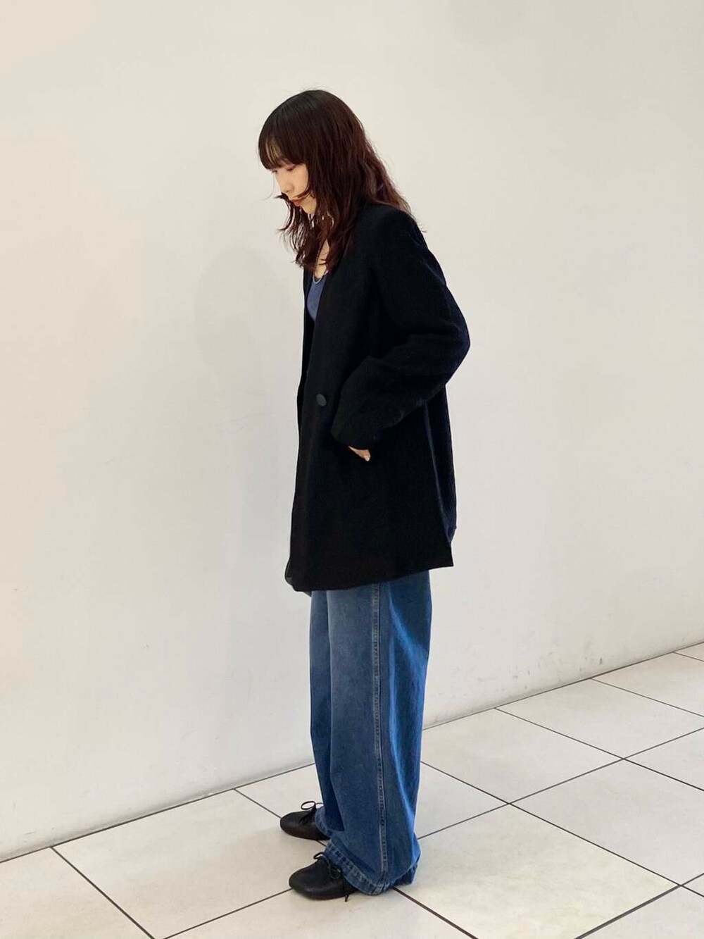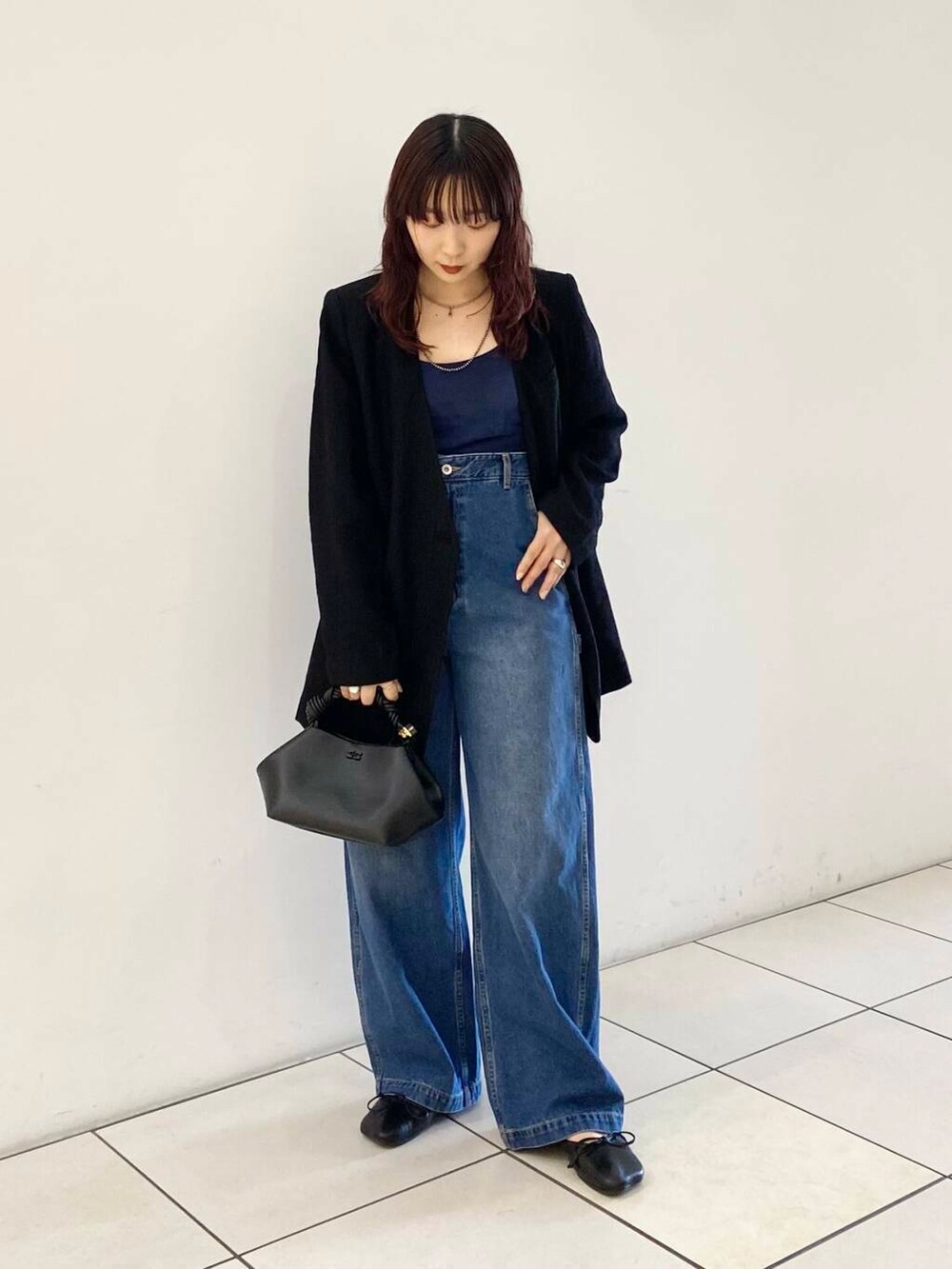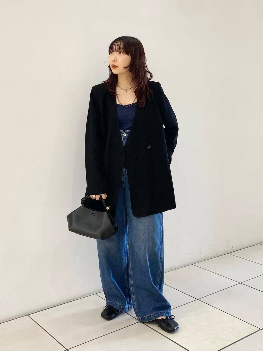 ジャケットがラフな印象になるように、カジュアルなシルエットのデニムを合わせました。