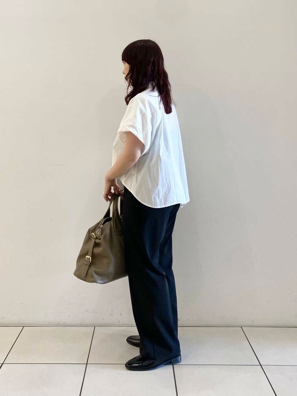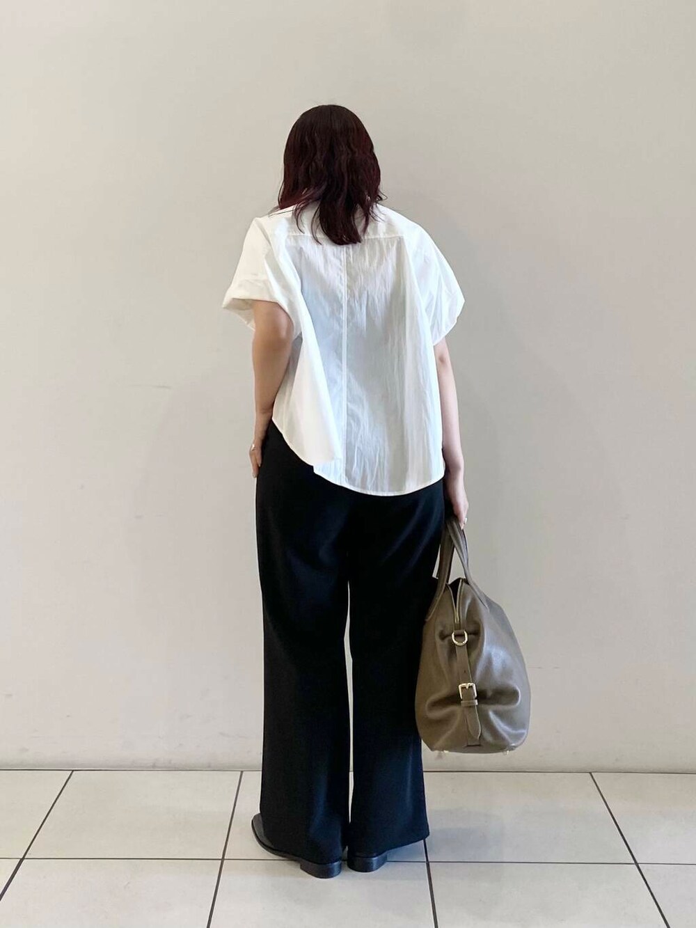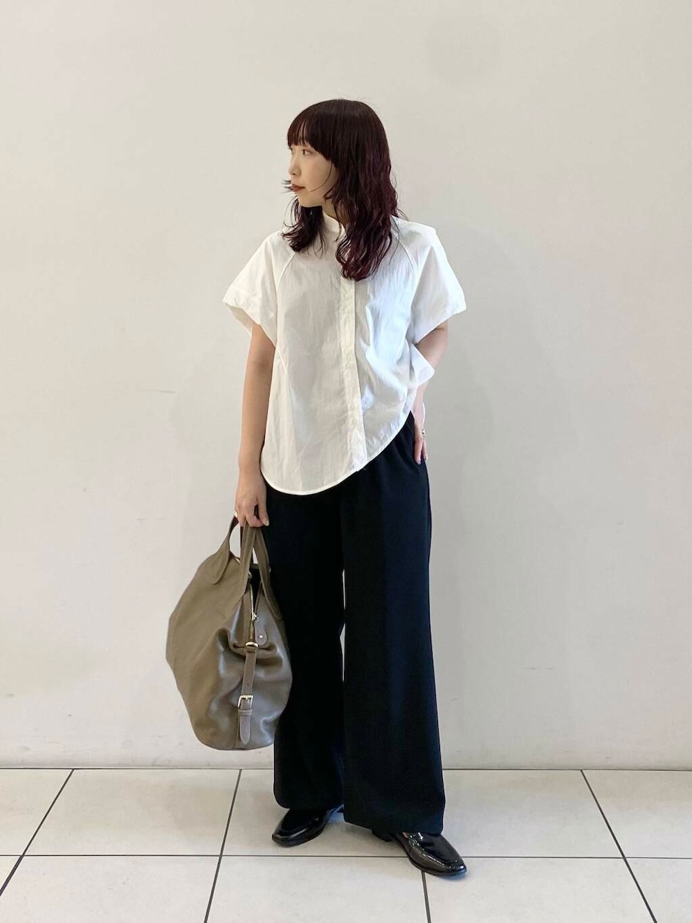 オンオフ兼用でもおすすめのストレッチタックワイドパンツ。