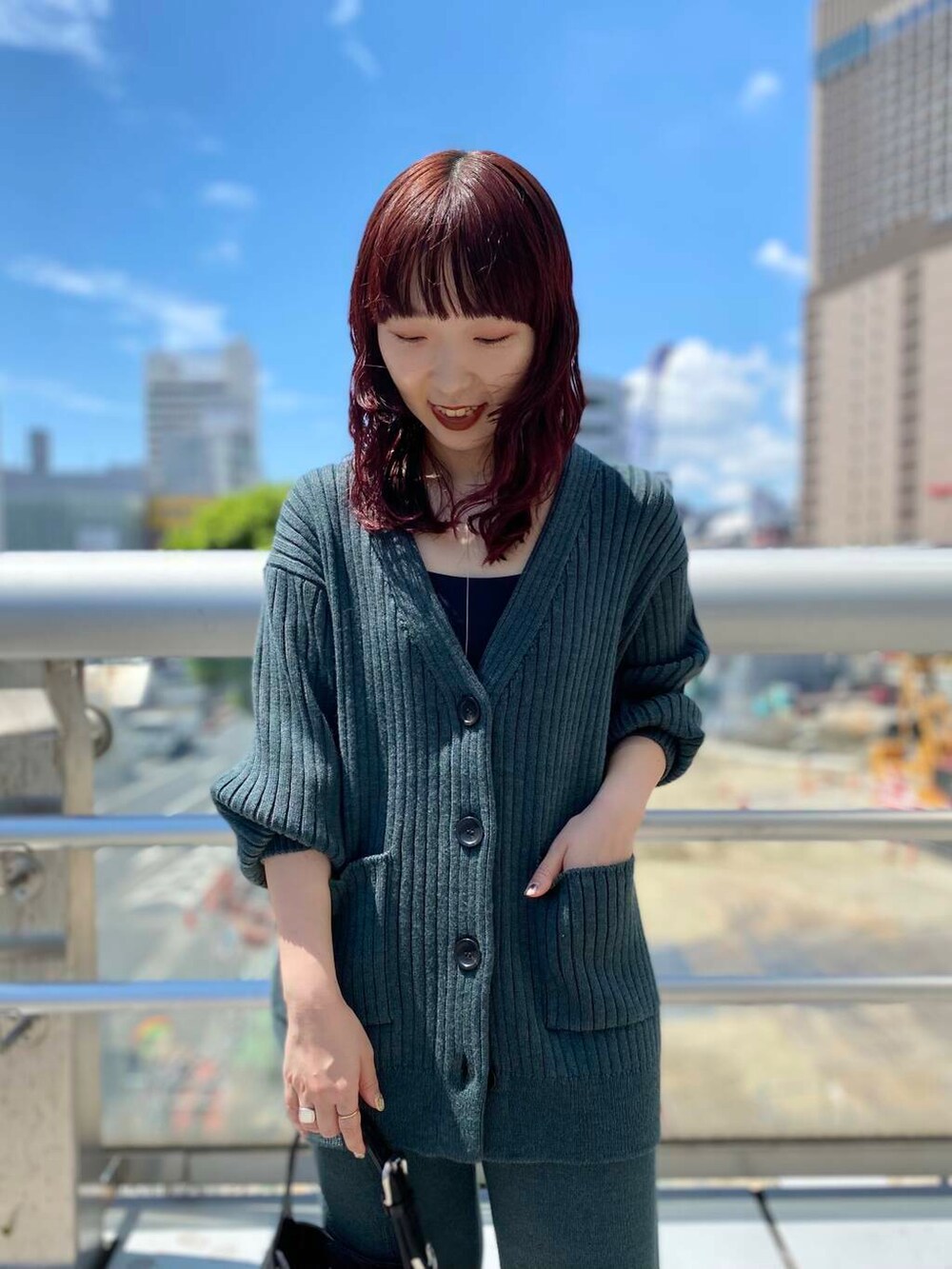 絶妙なグリーンのニットカーディガンです🤍
