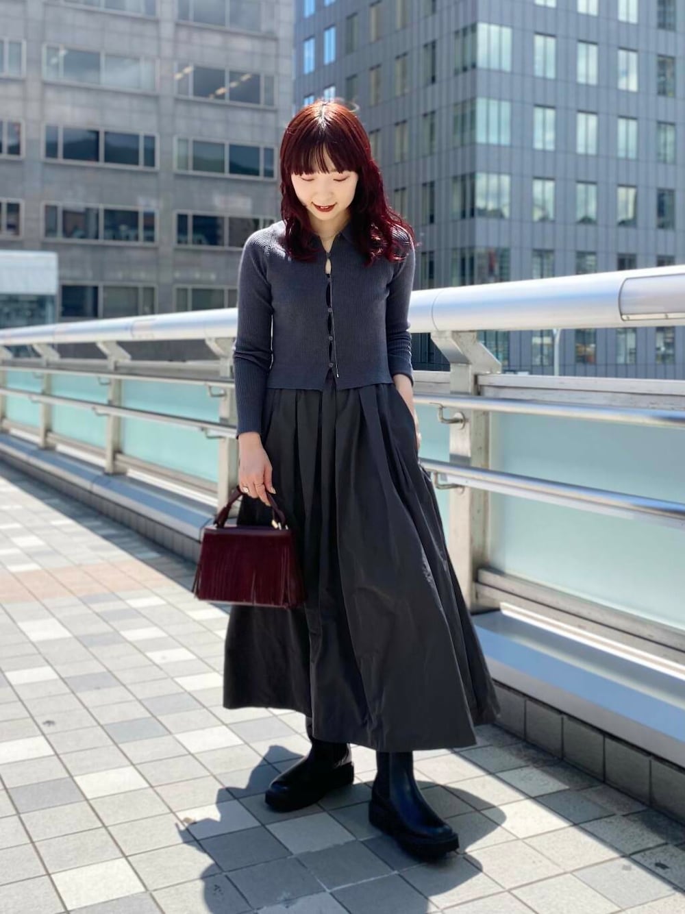 コンパクトな着丈なのでボリュームスカートとの相性も◎