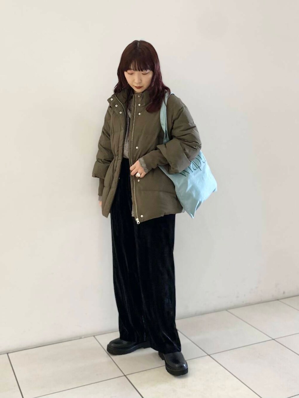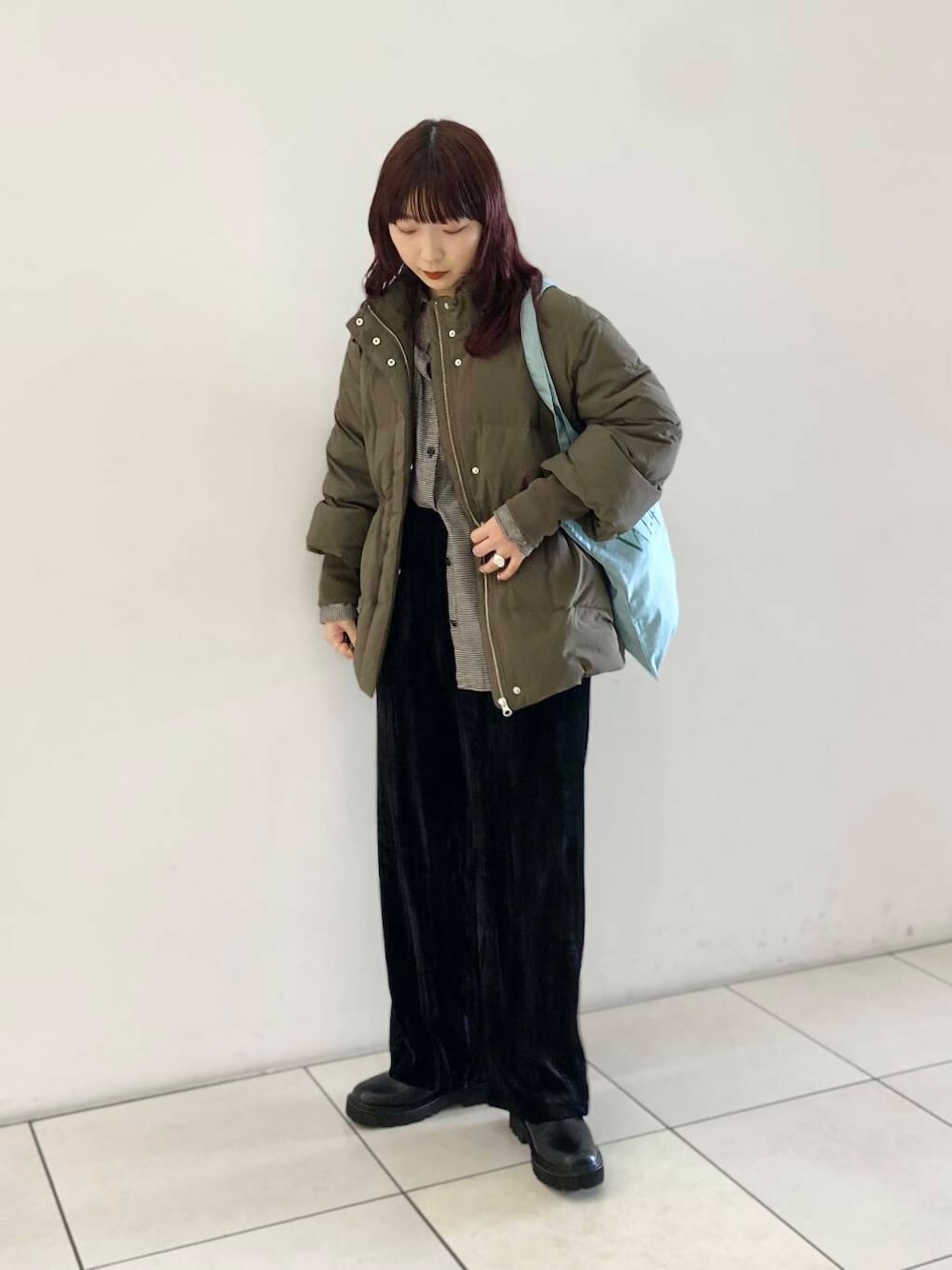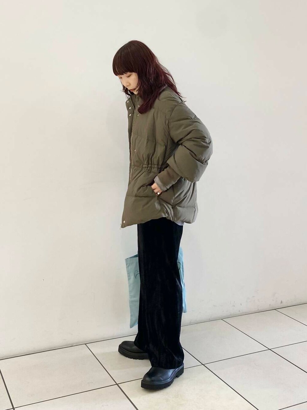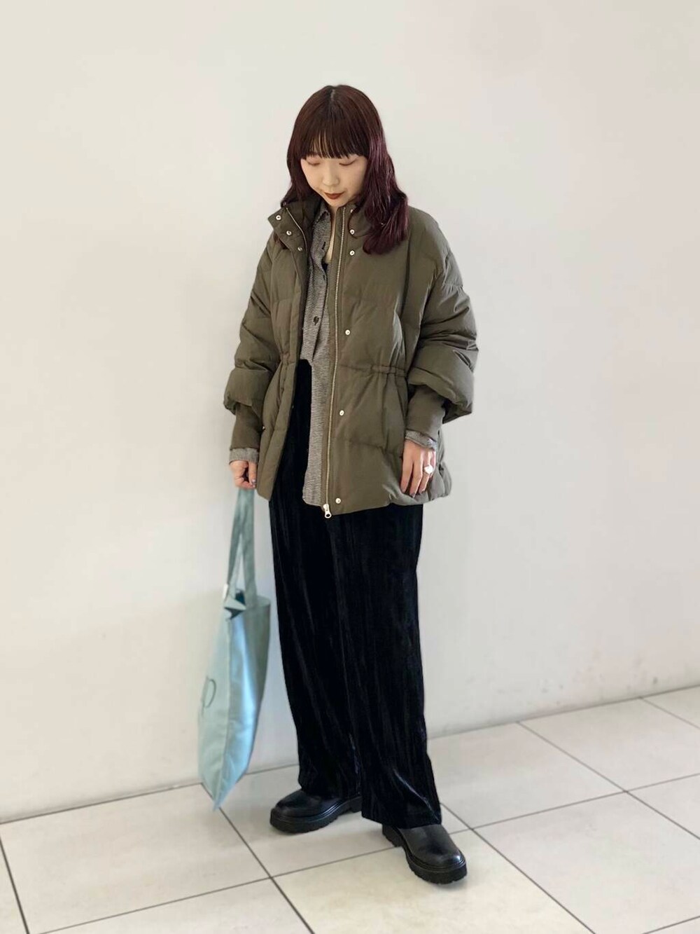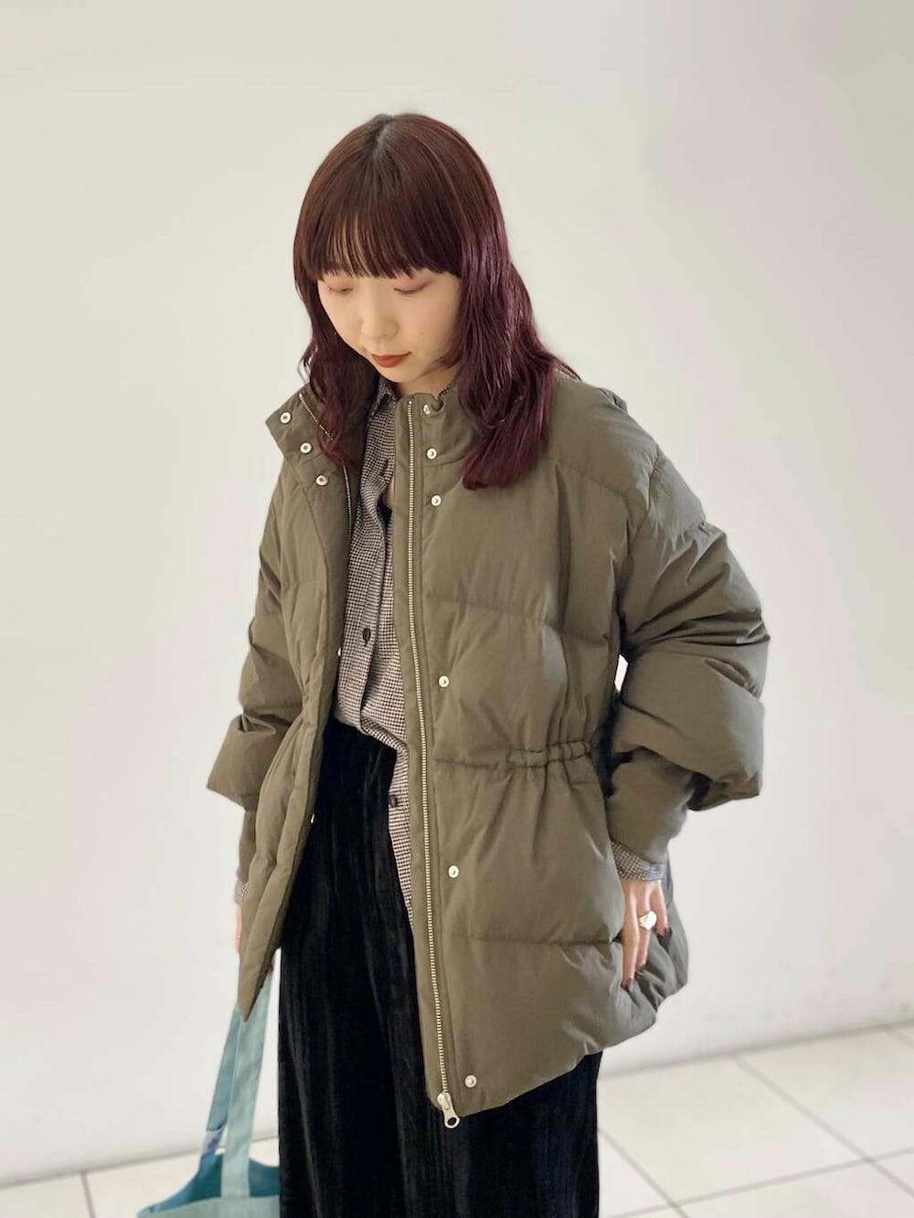 ウエストの絞りで調節が効くので、ダウンの着膨れ感が気にならないデザインに◎