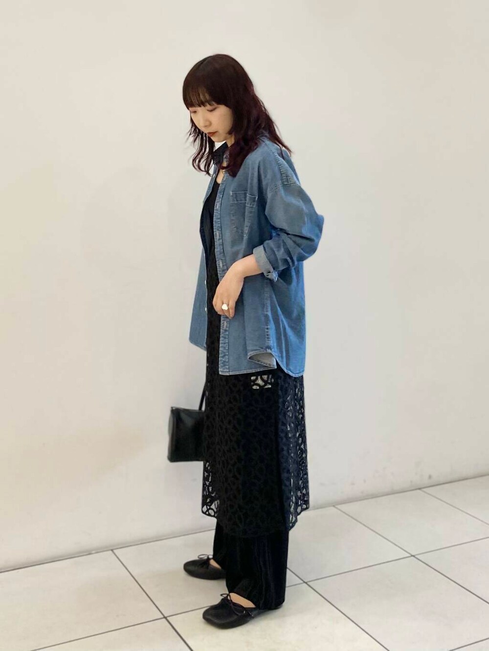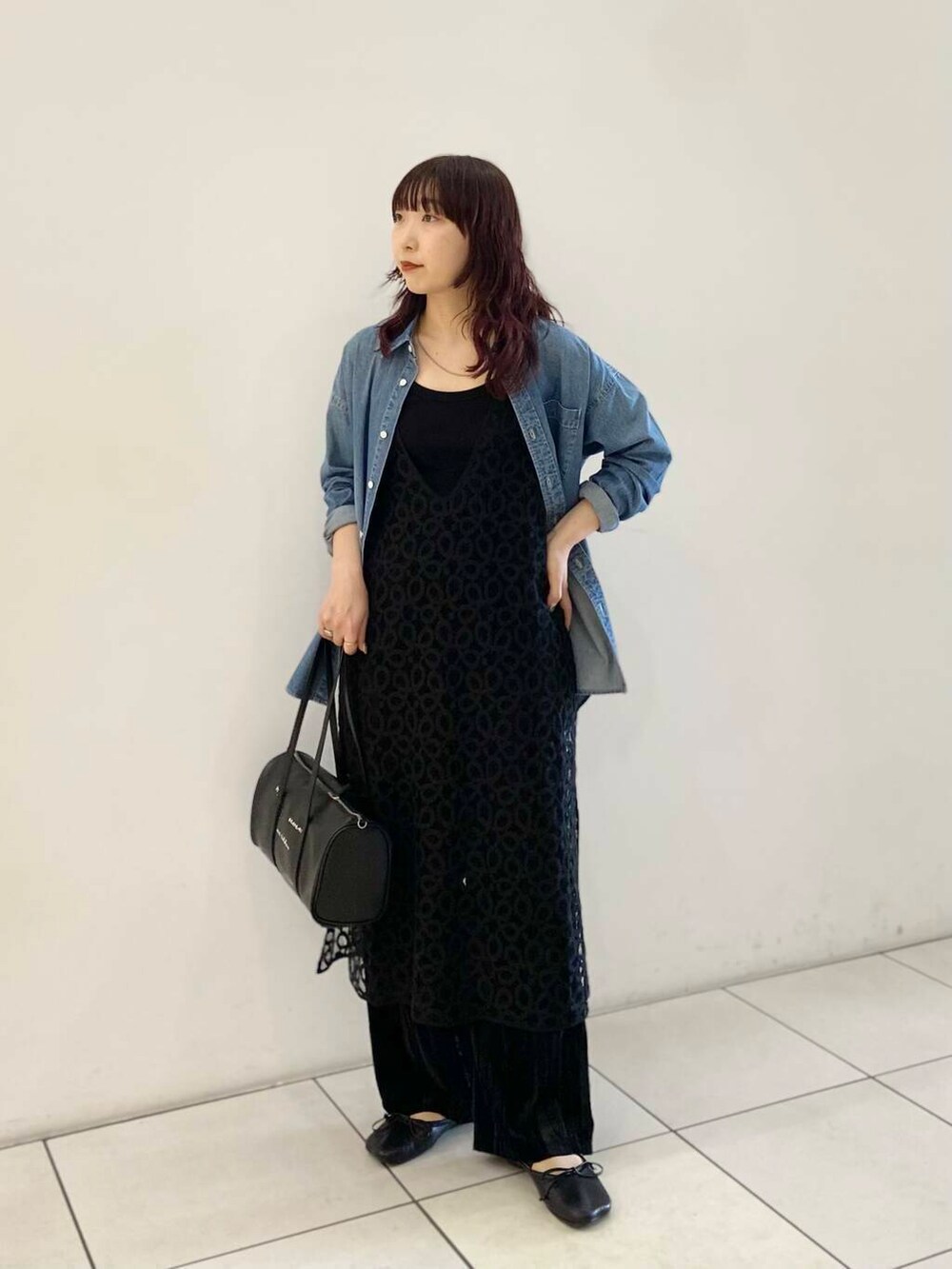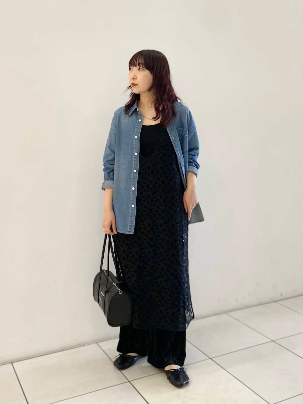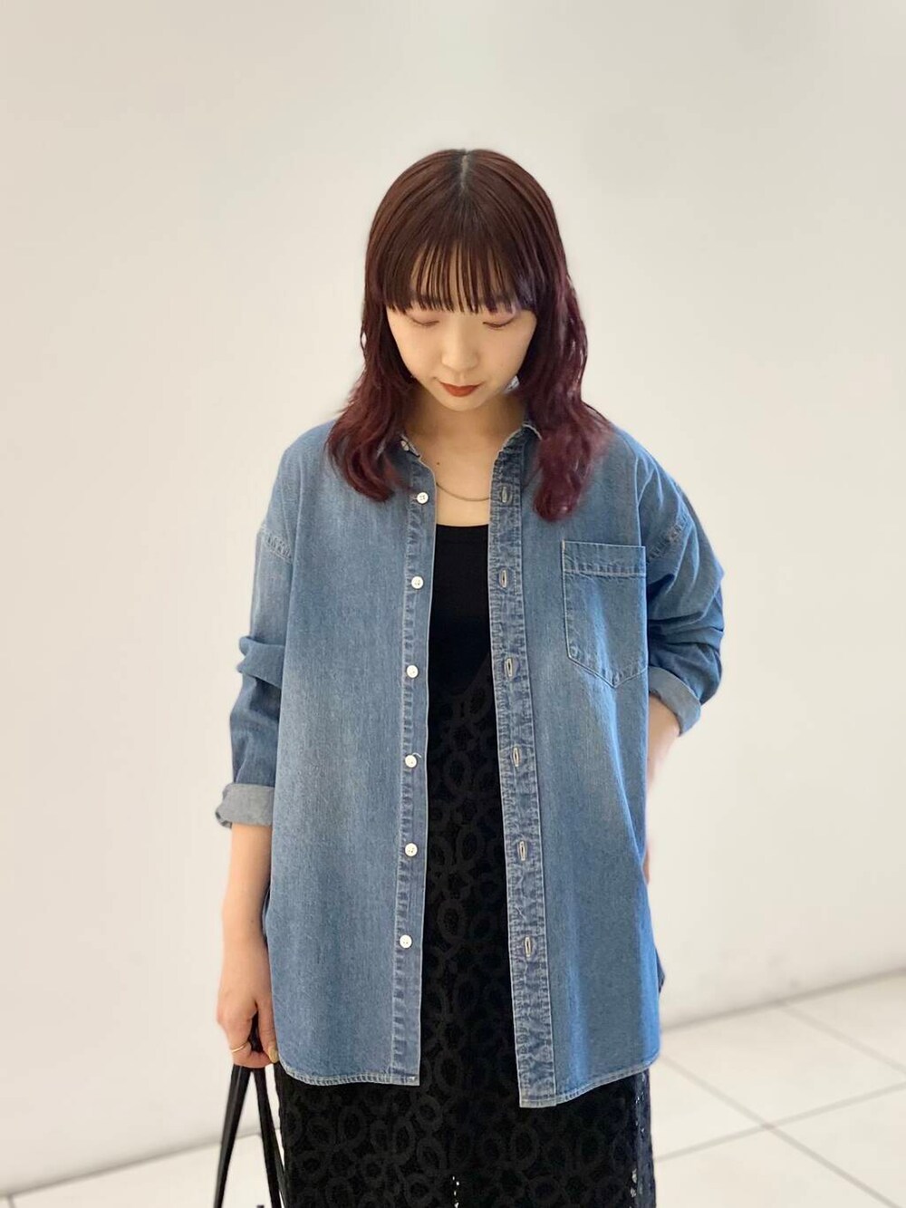 少しオーバーなデニムシャツが、1枚でも様になってレイヤードにも使えてお勧めです◎