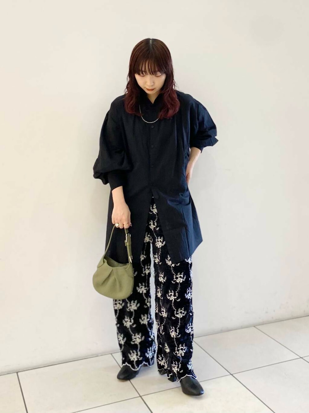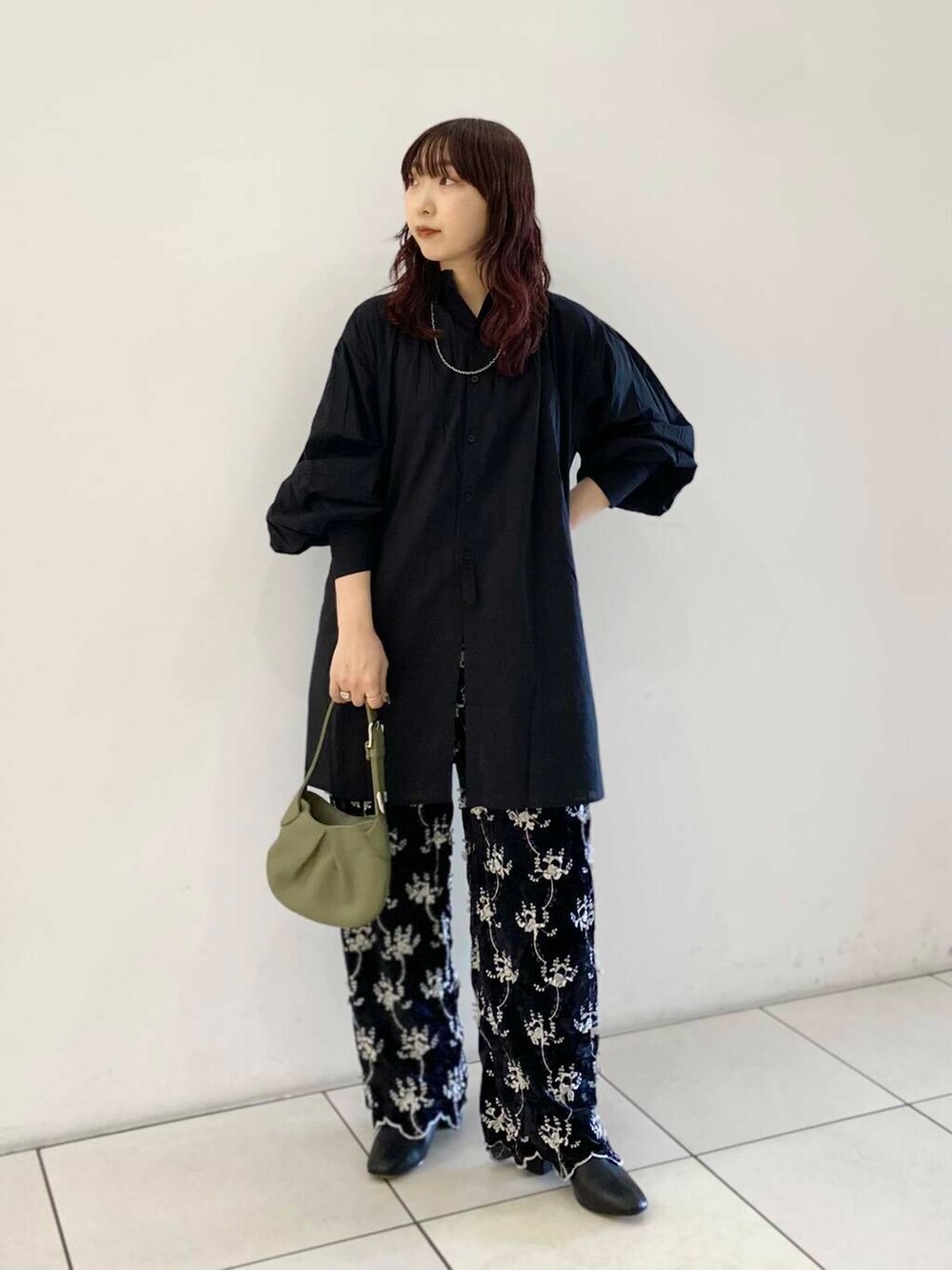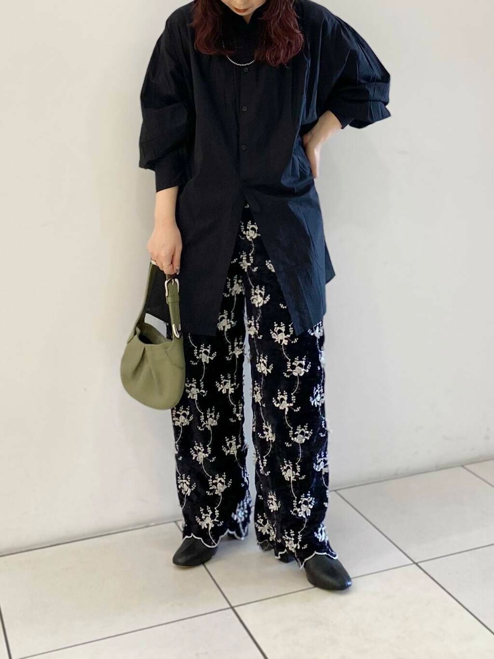 ベルベット素材に刺繍がアクセントになったcrinkle crinkle crinkleらしいパンツです。