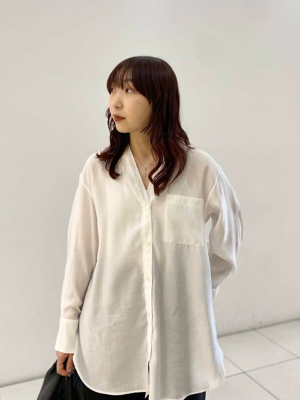 前後Vネックの開き具合が綺麗なブラウス。