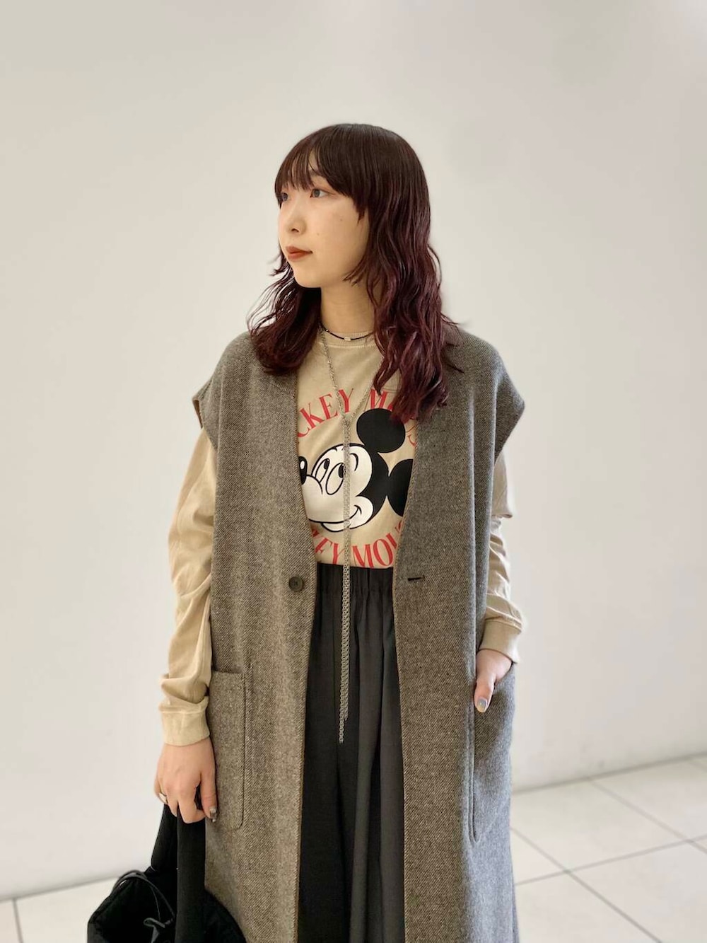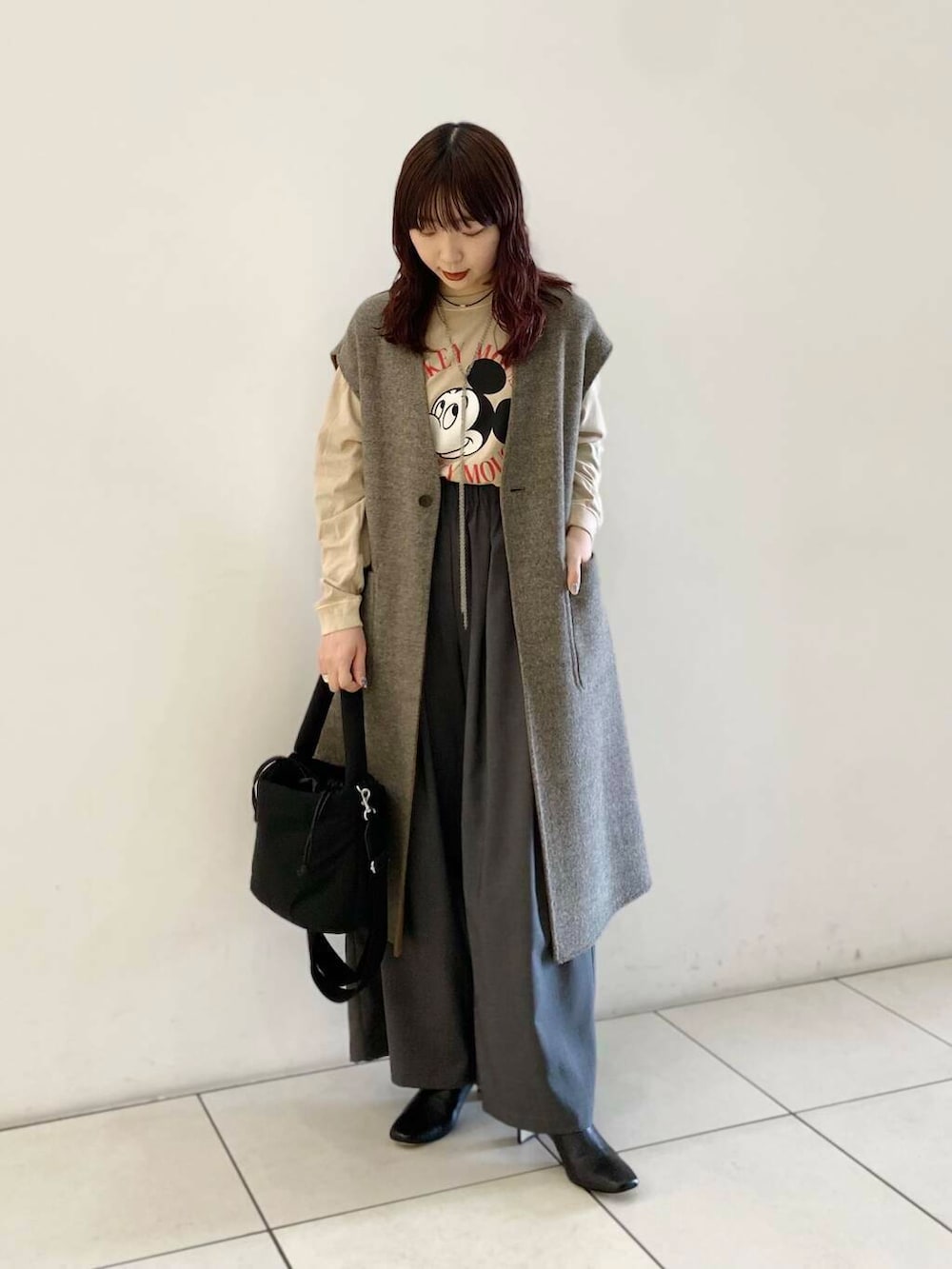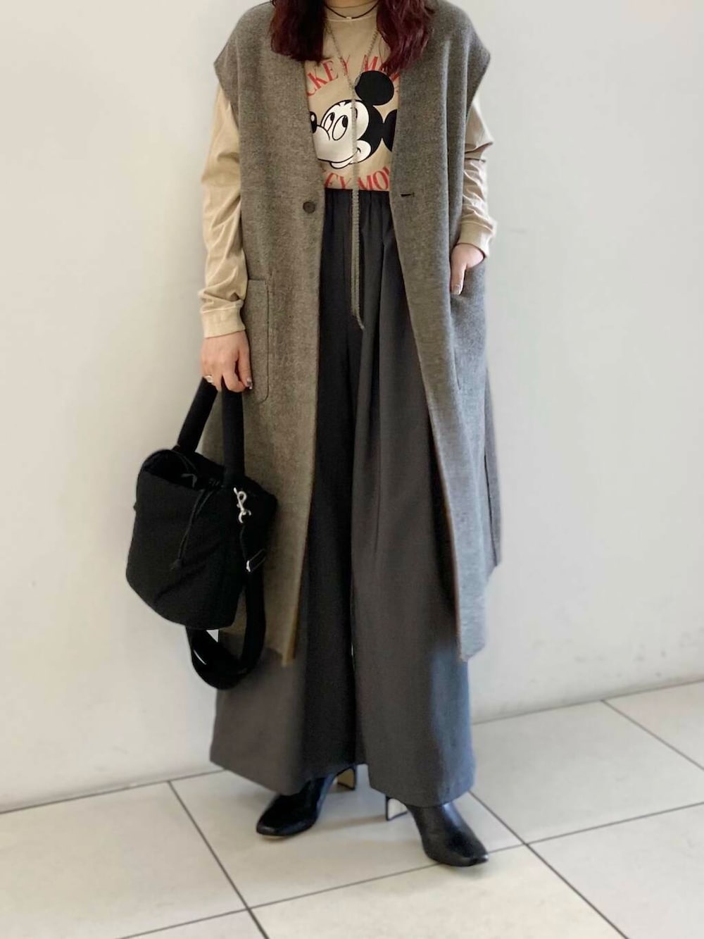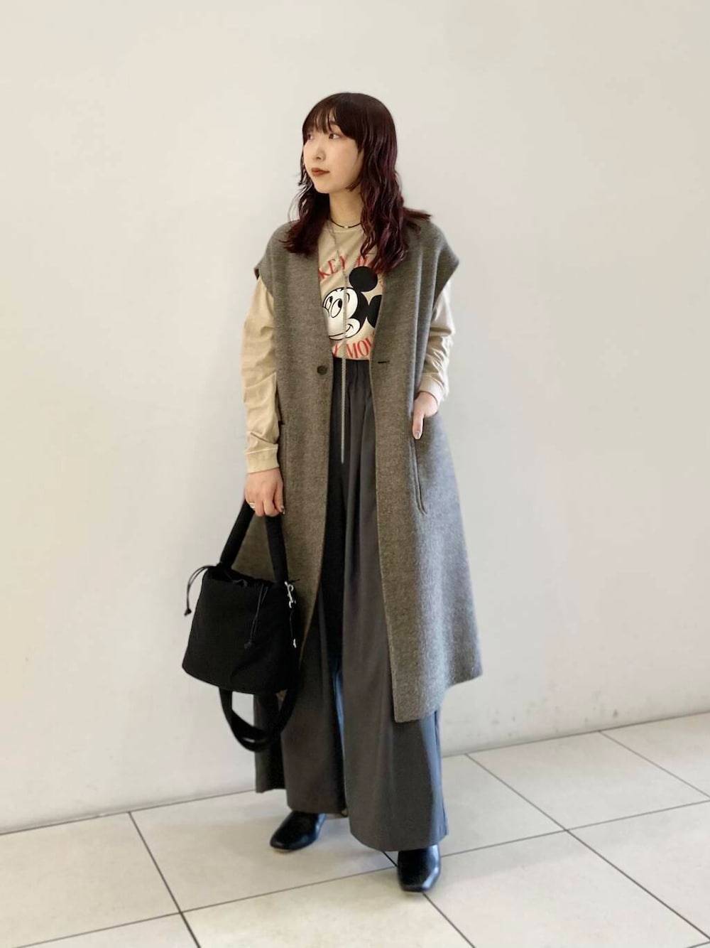 アームが広めなのでパーカーなどの上から羽織ったりと、合わせるアイテムも幅広いです!