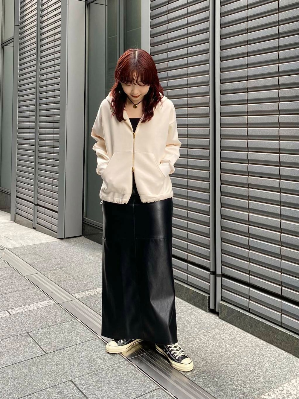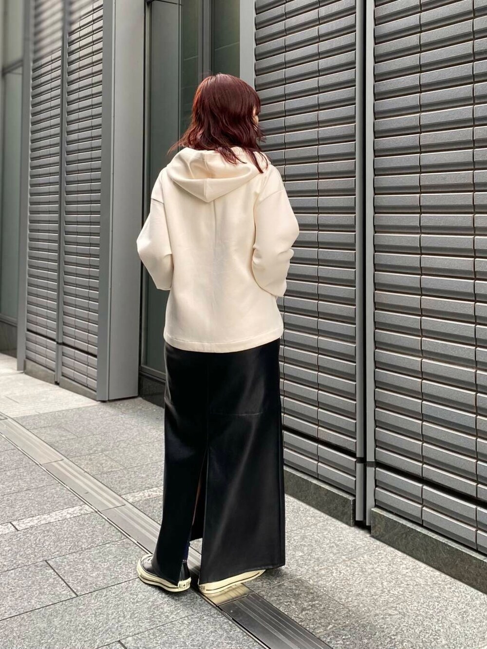 中にパーカーを着られるくらいのゆとりがあるサイズ感でした◎