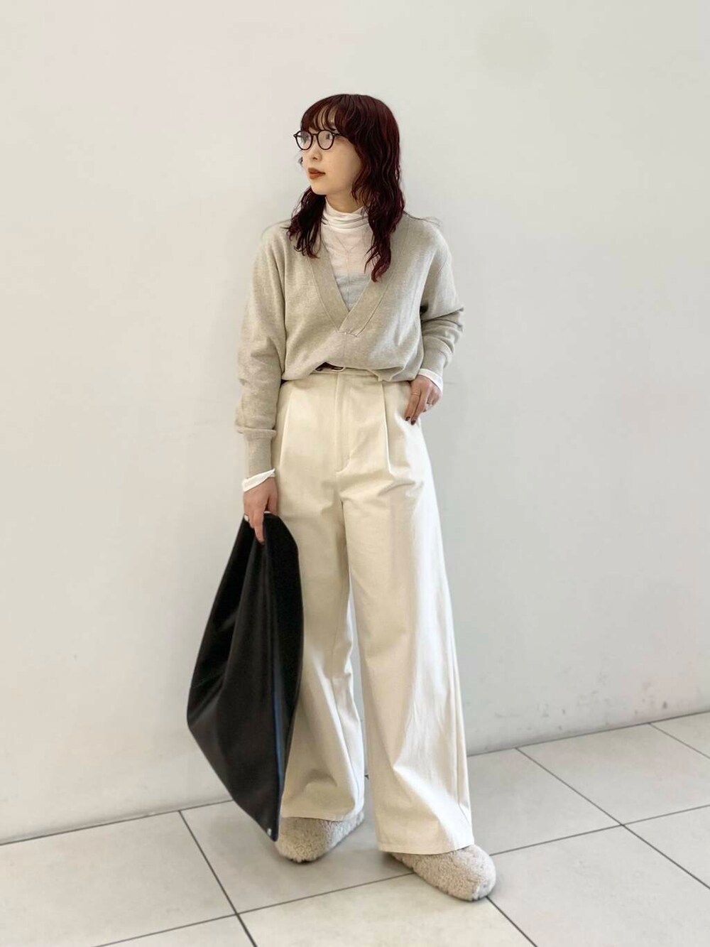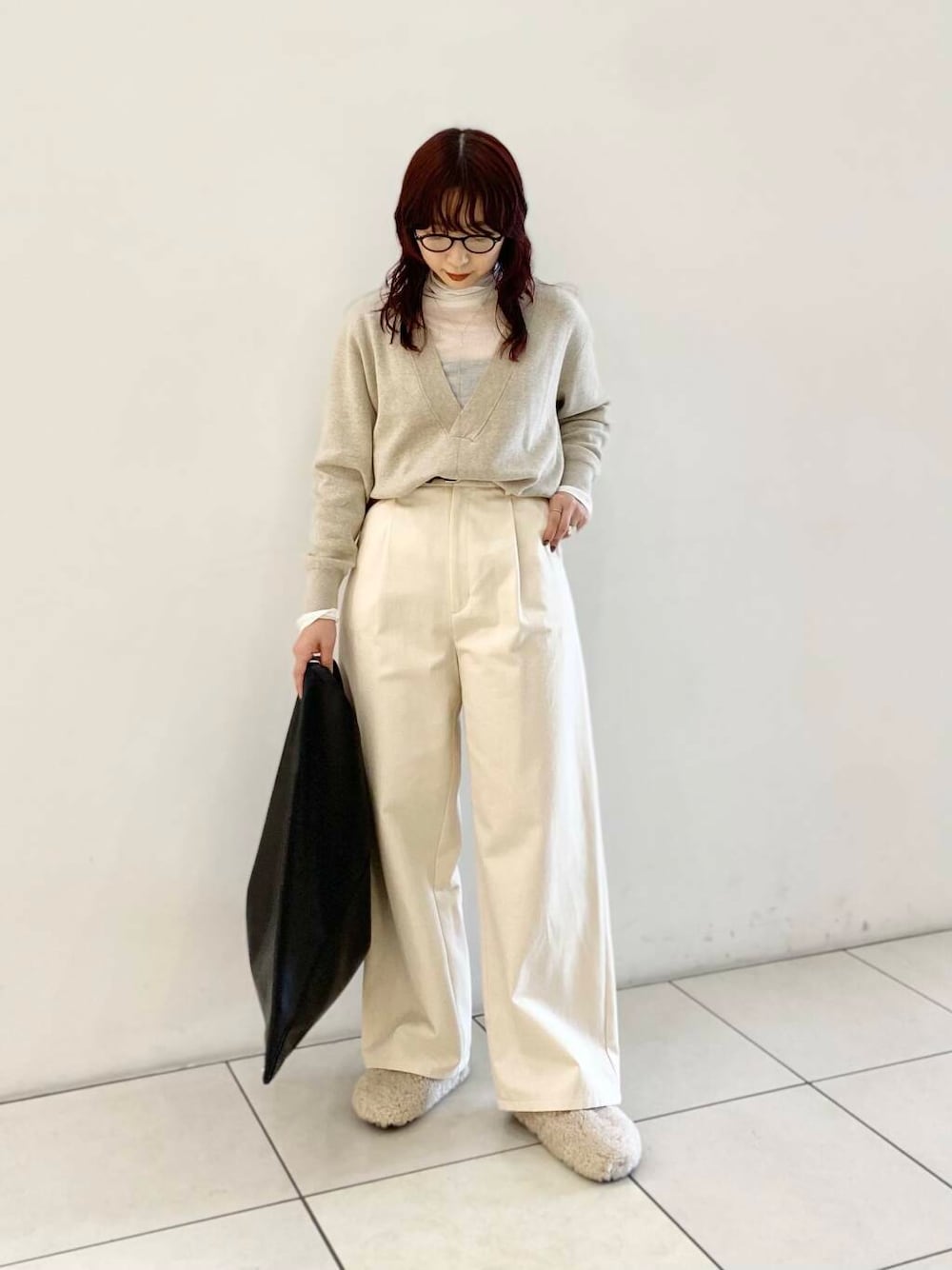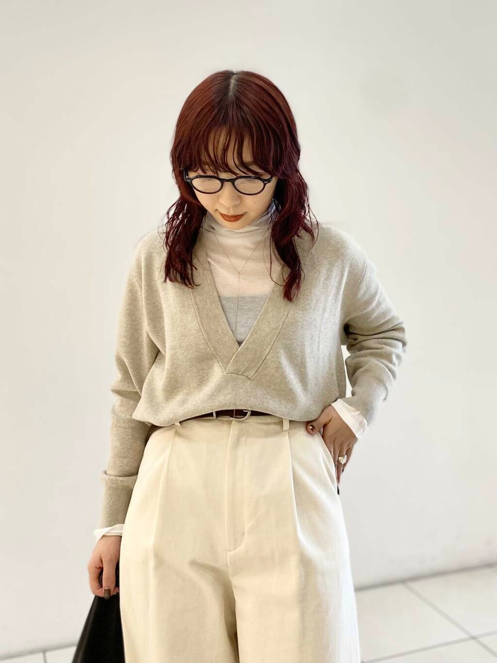 深めのVネックなので、シアーのインナー以外にシャツやロゴTなどを重ねても可愛いです!