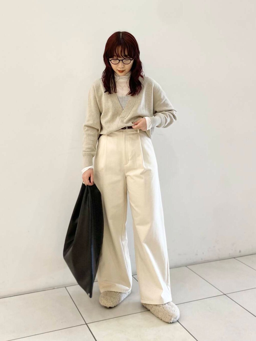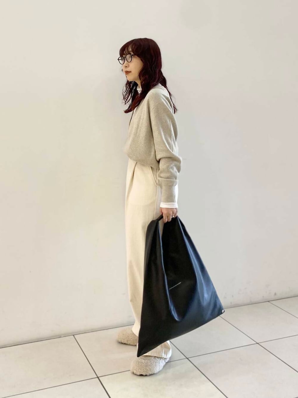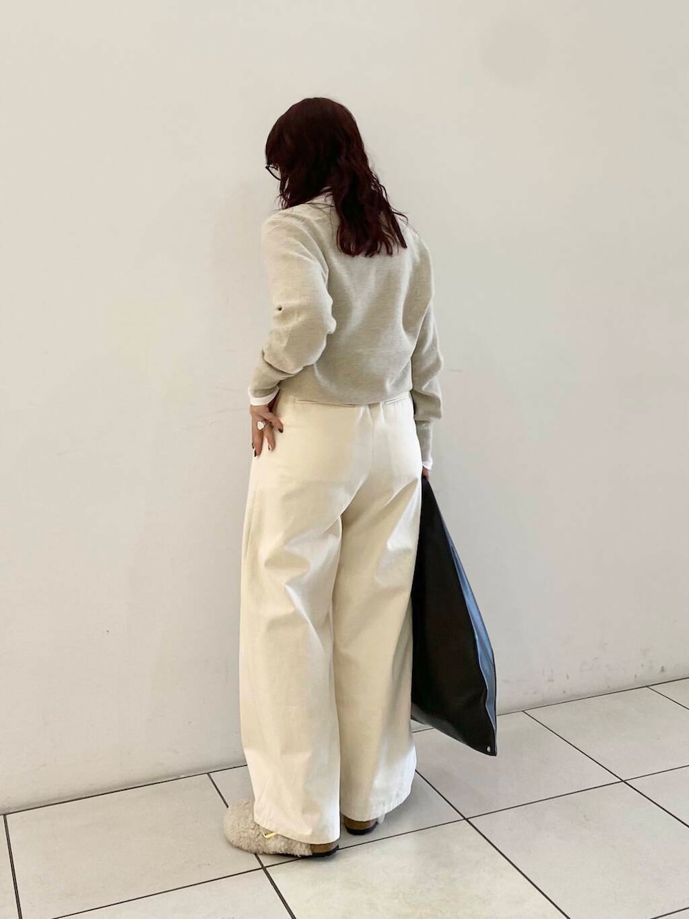 深めのVネックなので、シアーのインナー以外にシャツやロゴTなどを重ねても可愛いです!