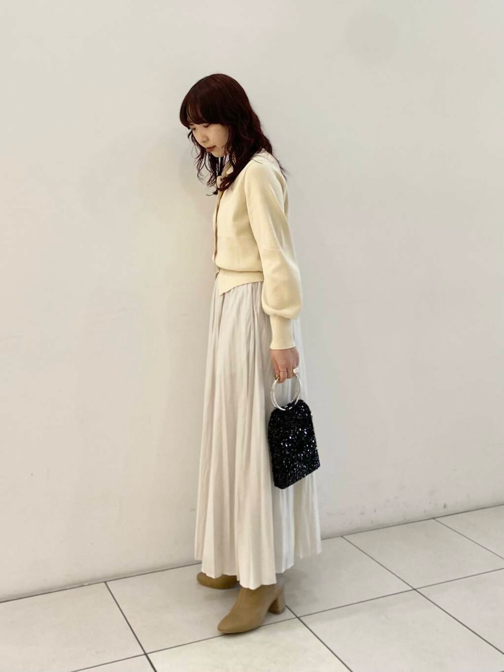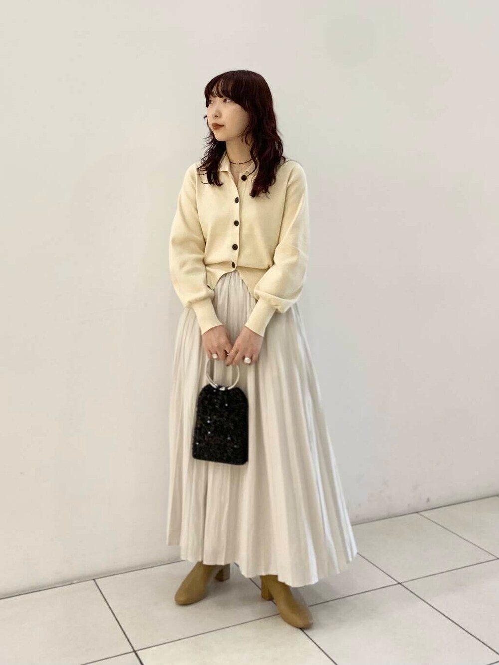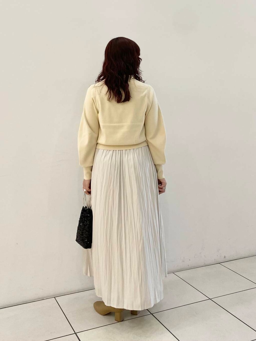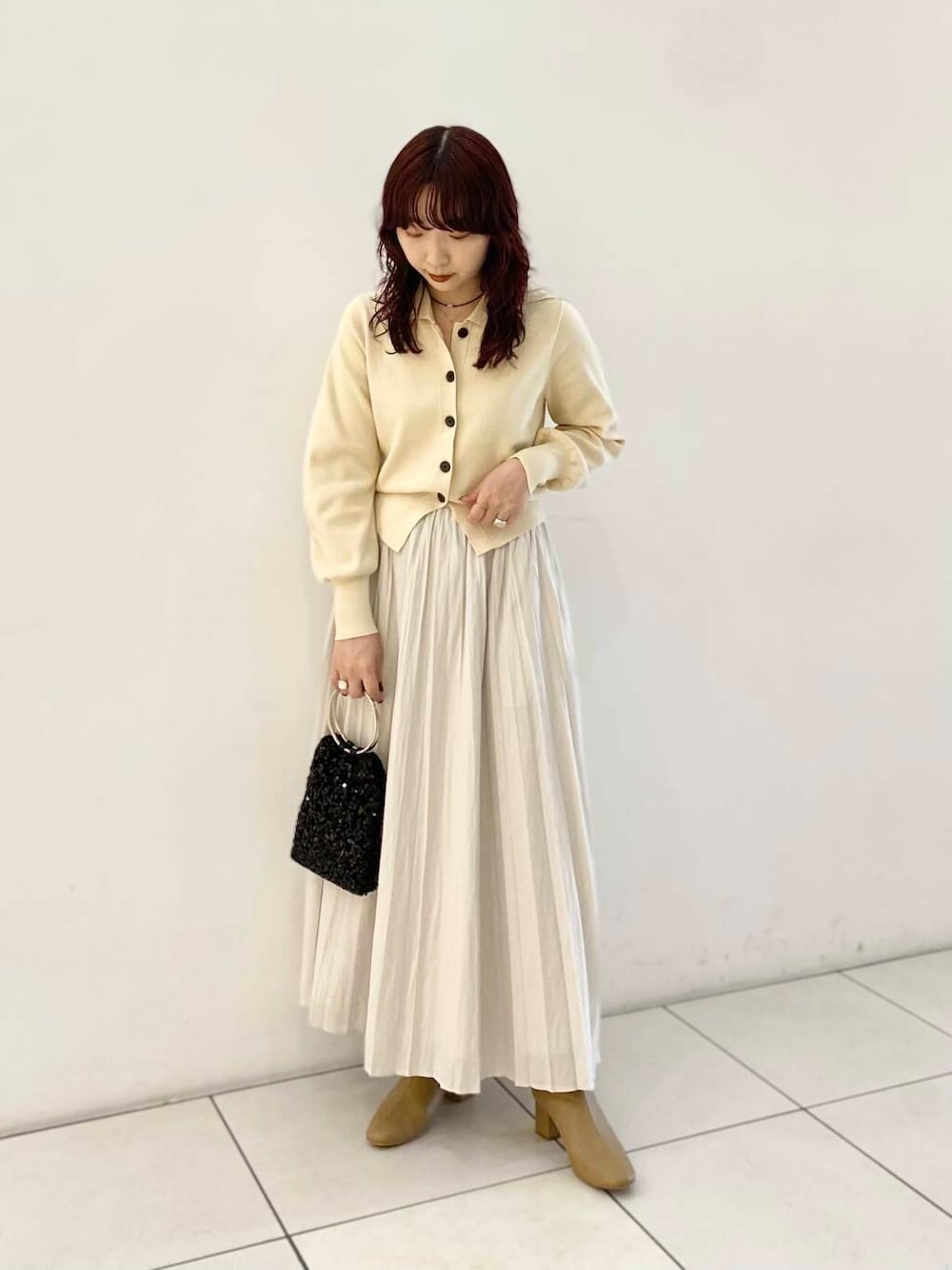光沢感が綺麗なチンツプリーツスカートを合わせました!