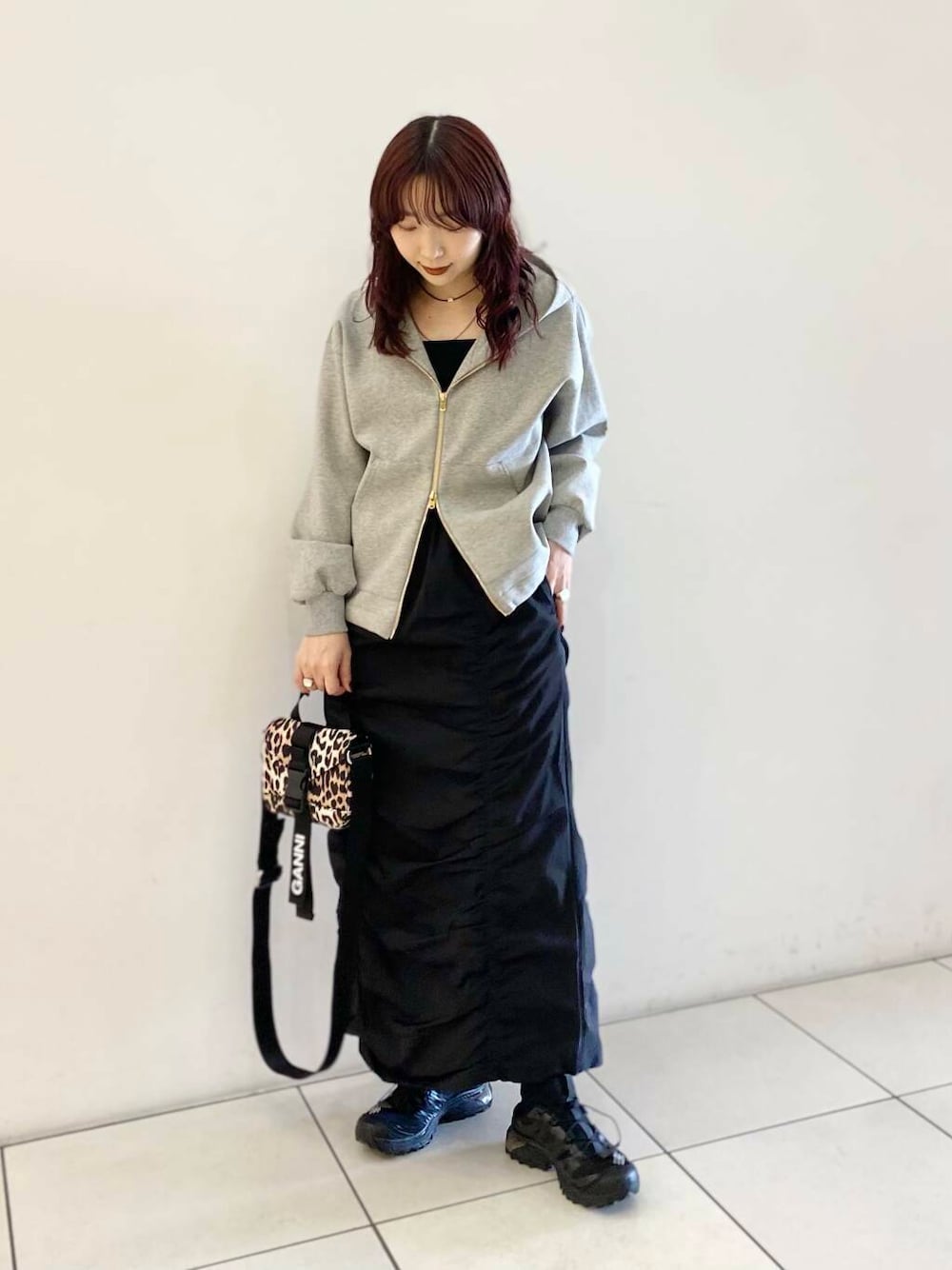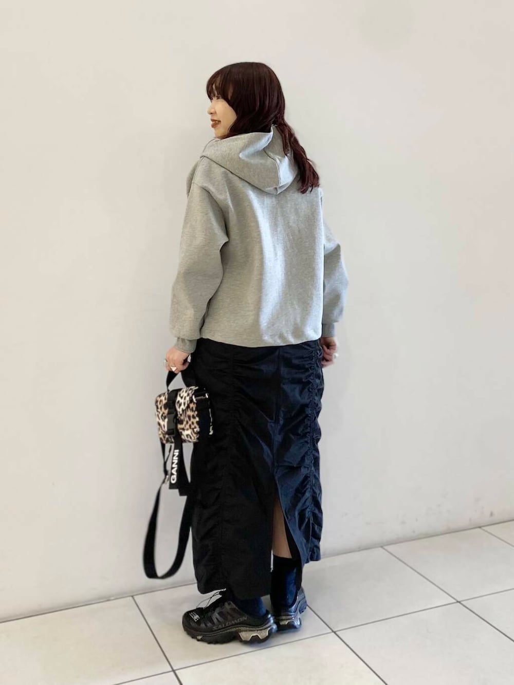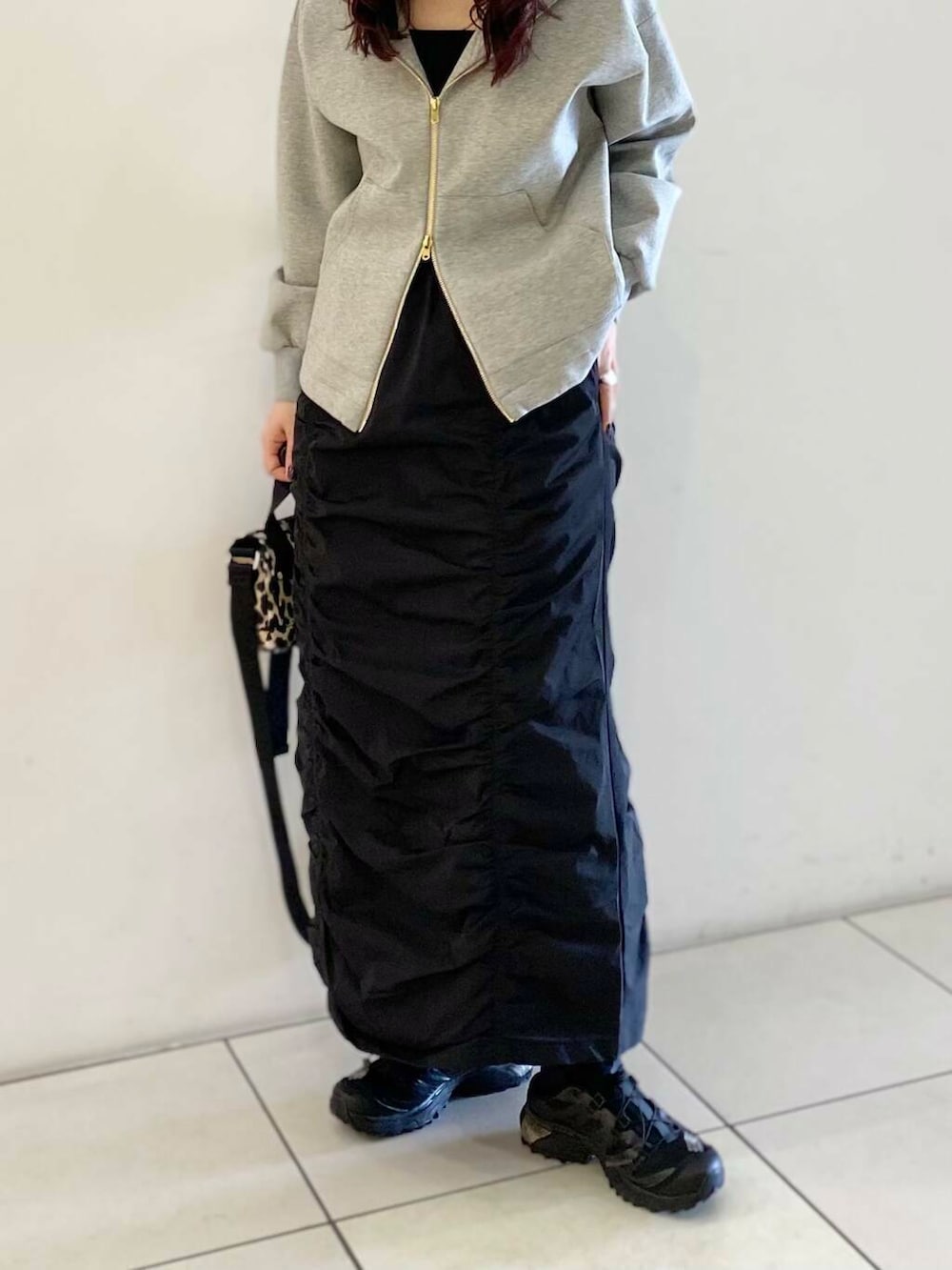 タイトめなシルエットですが、シャーリングデザインなのでヒップ周りのシルエットも気にせず着用出来ました◎