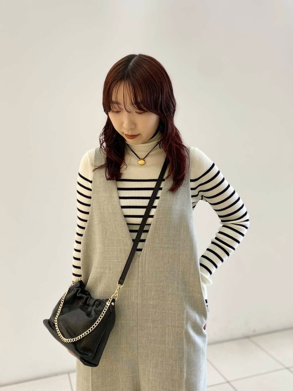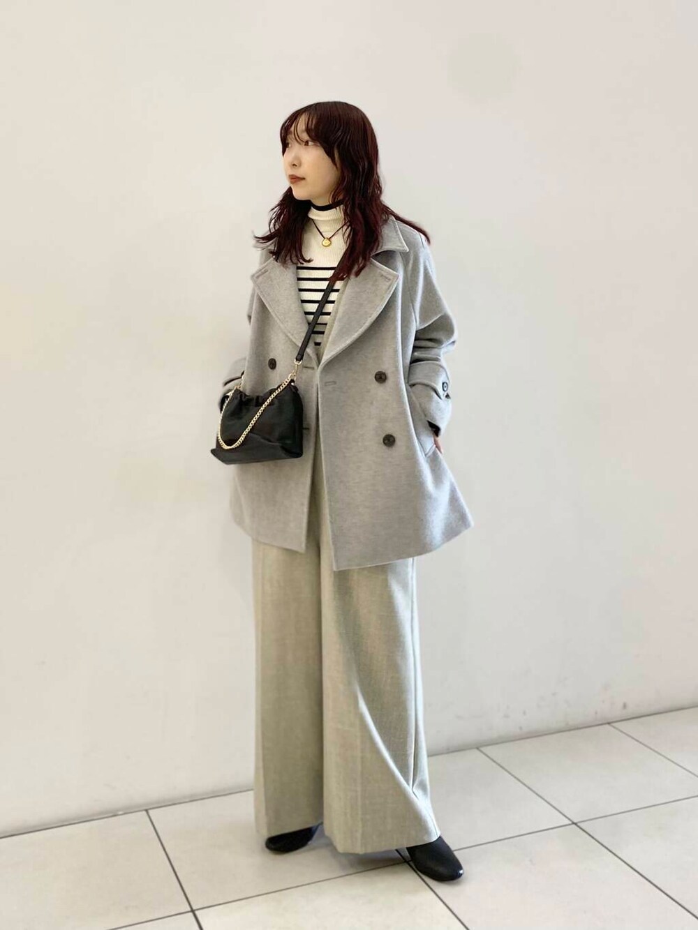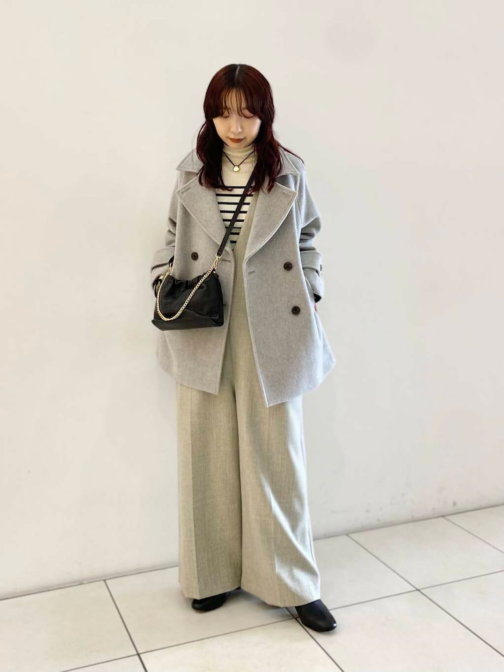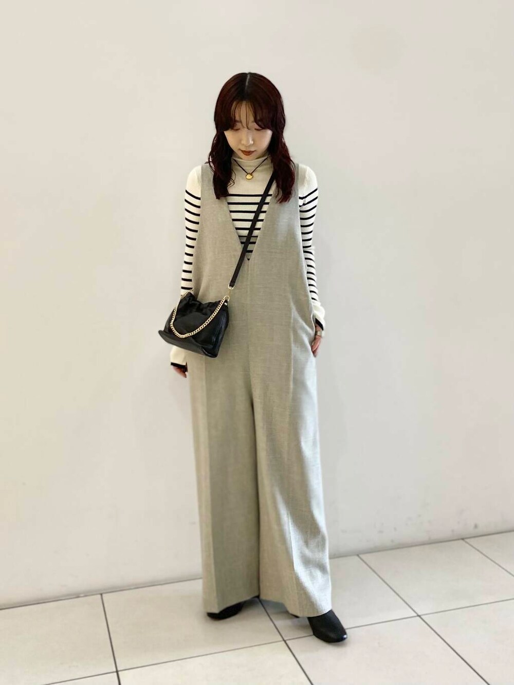 少し長めなので、ショートブーツを合わせております。
