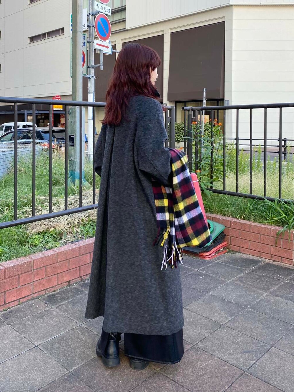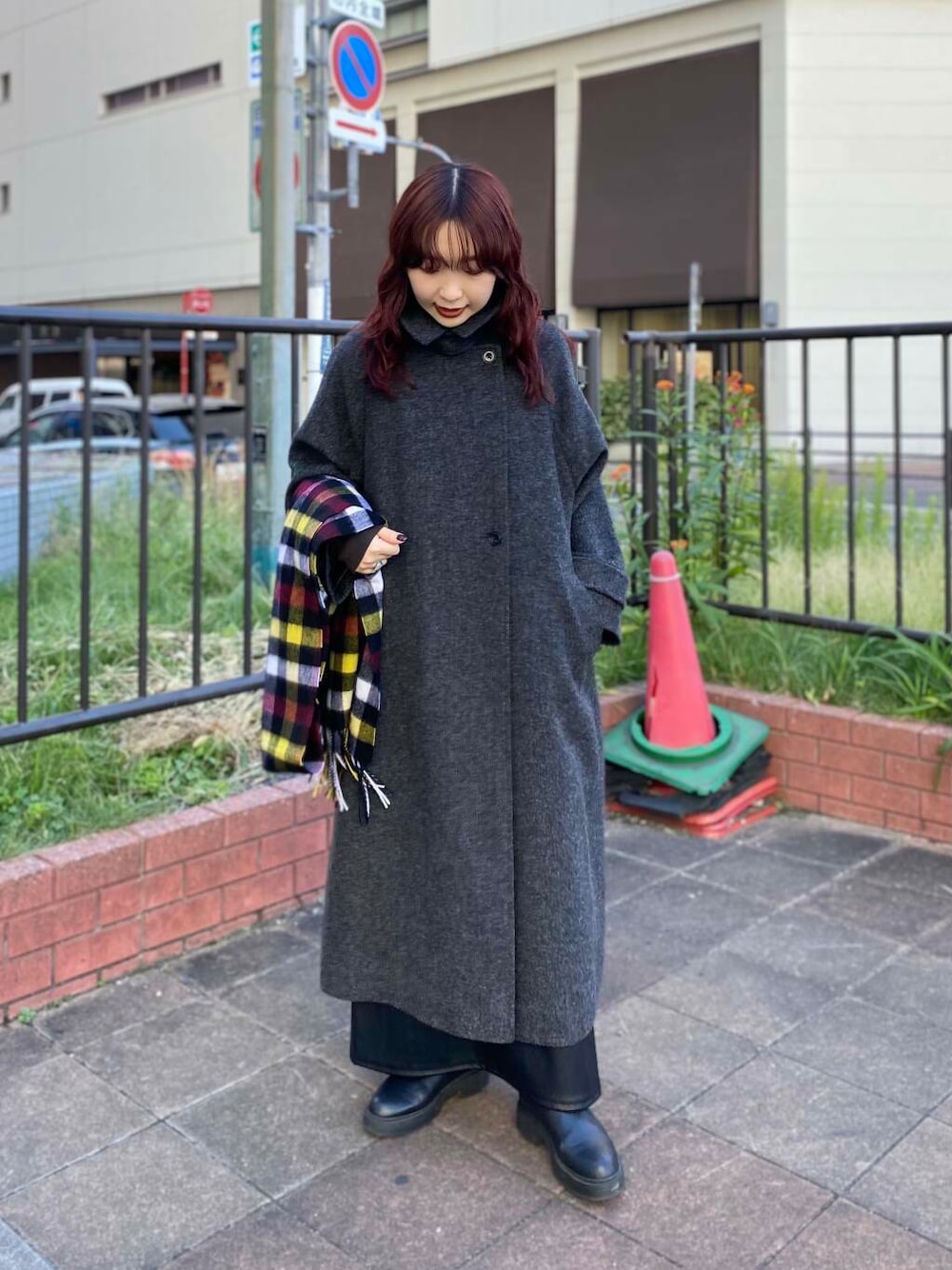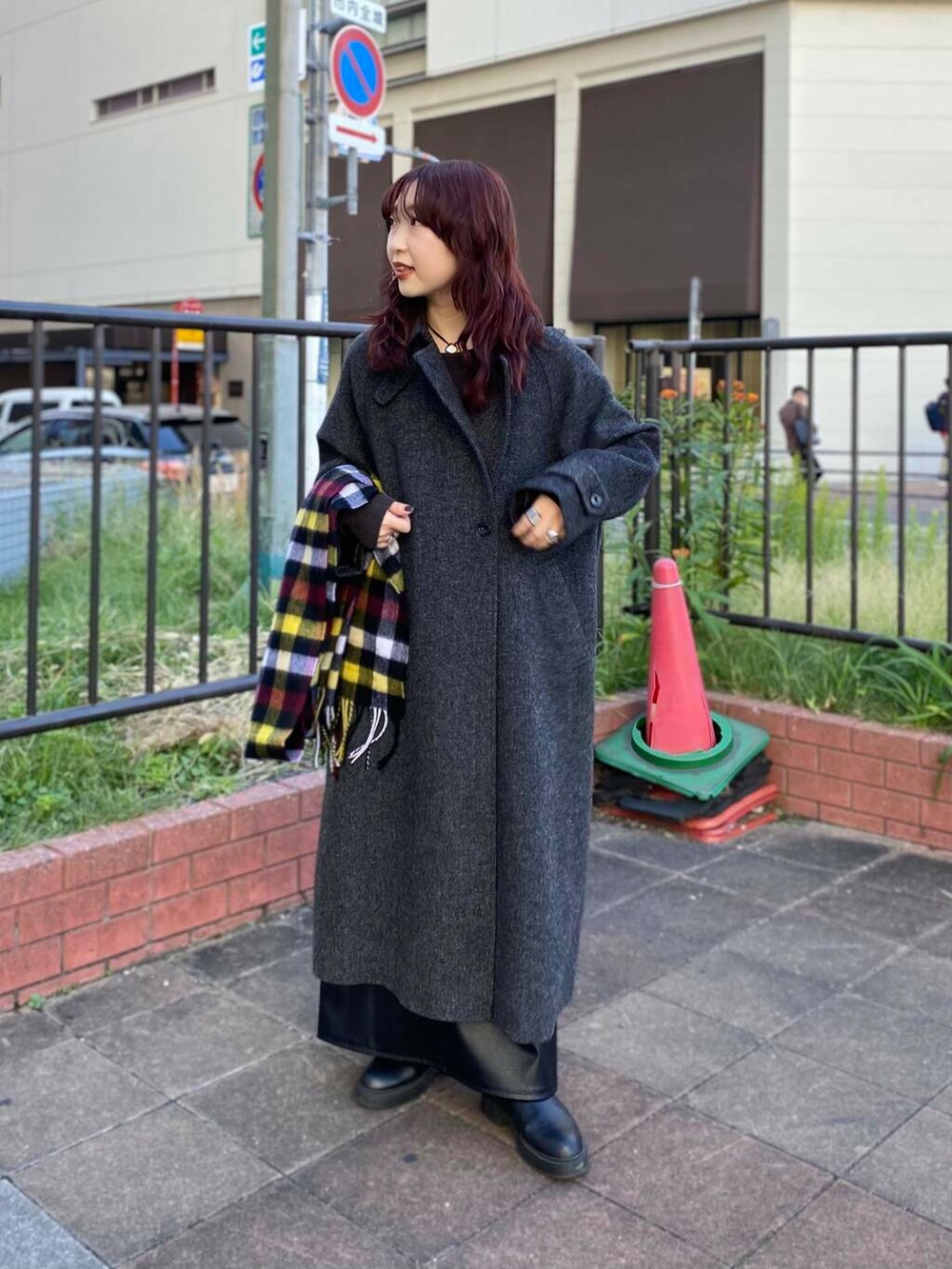 アウターがAラインに広がるので、タイトスカートでスッキリした印象にまとめました◎