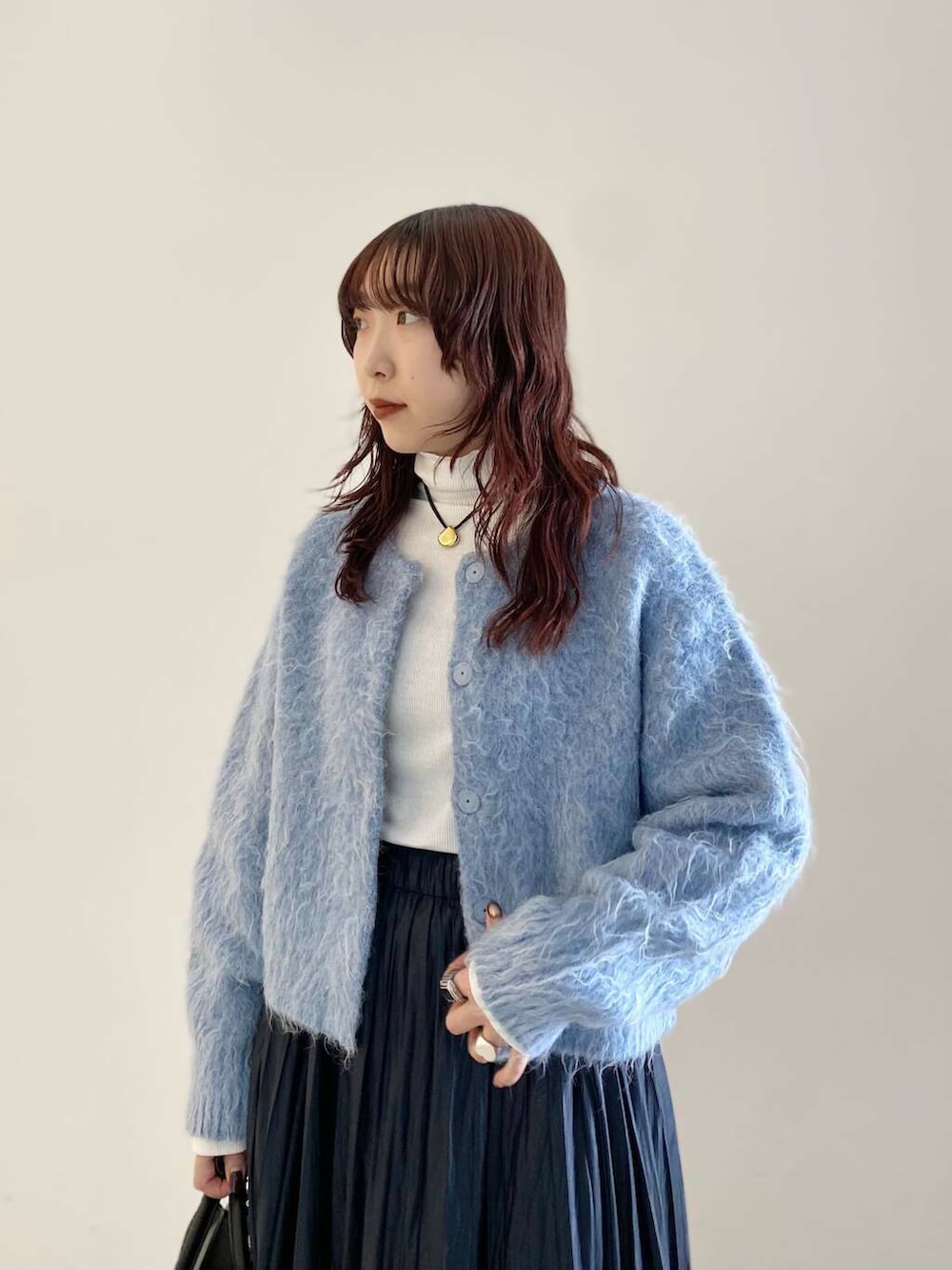 シャギーならではのボリューム感はありますが、丈感がスッキリめなので合わせ易いです◎