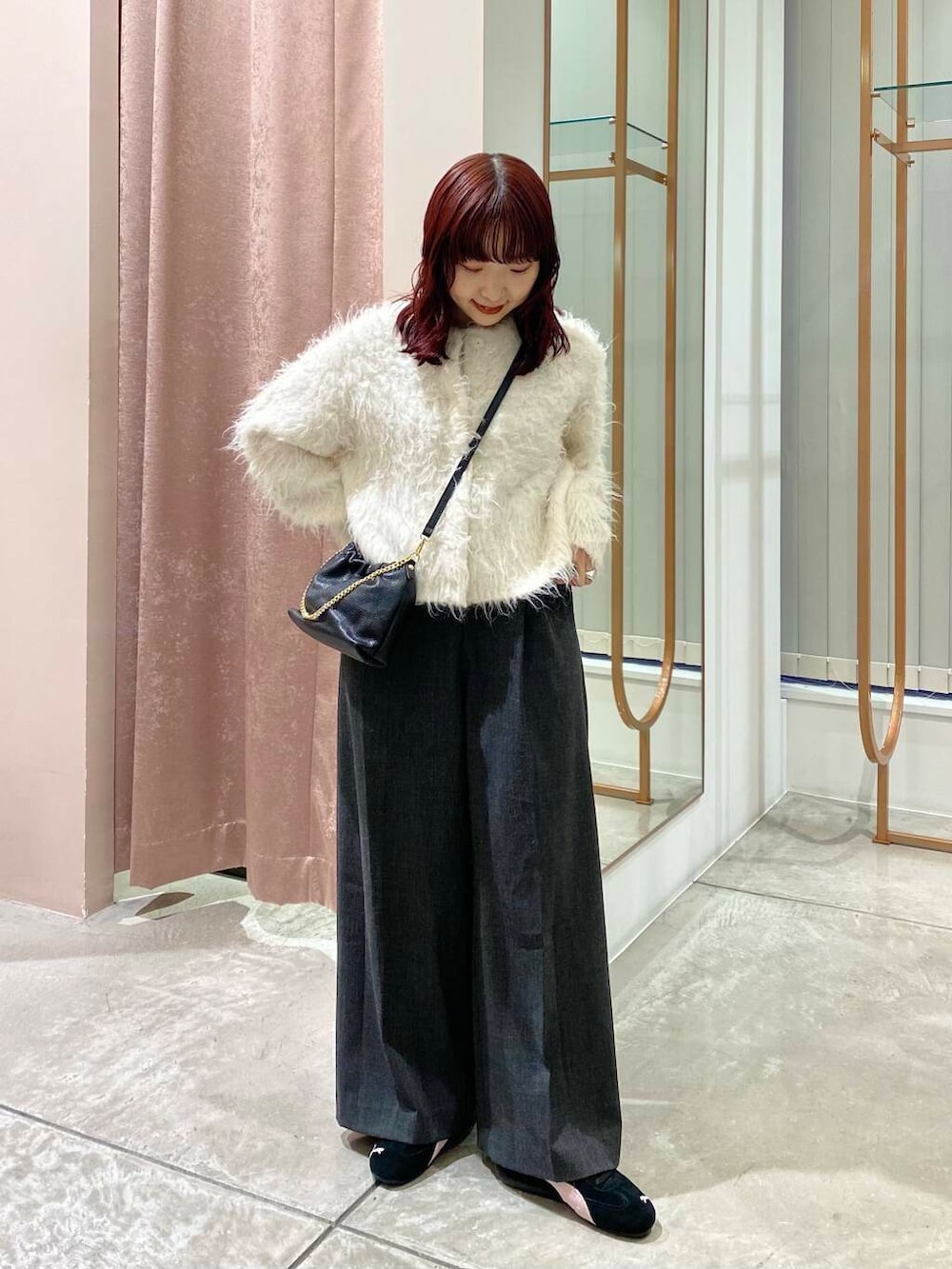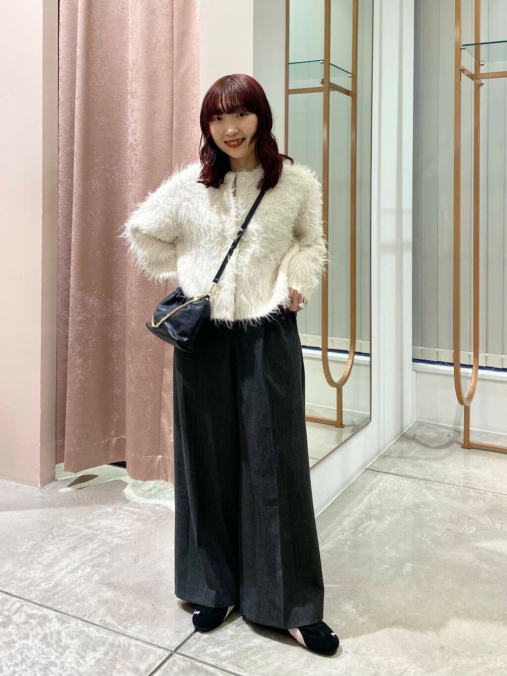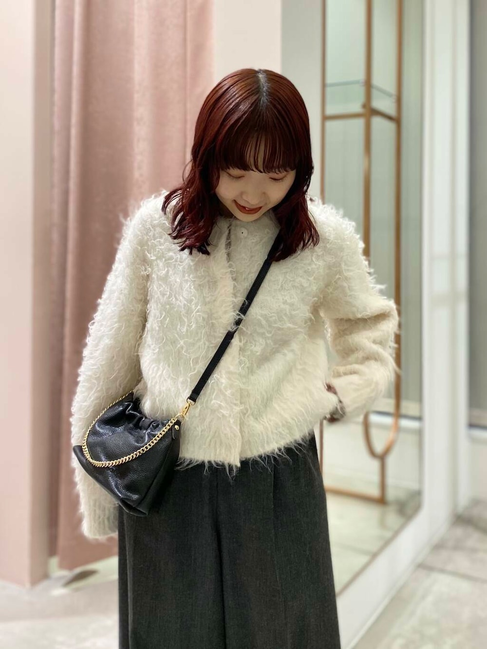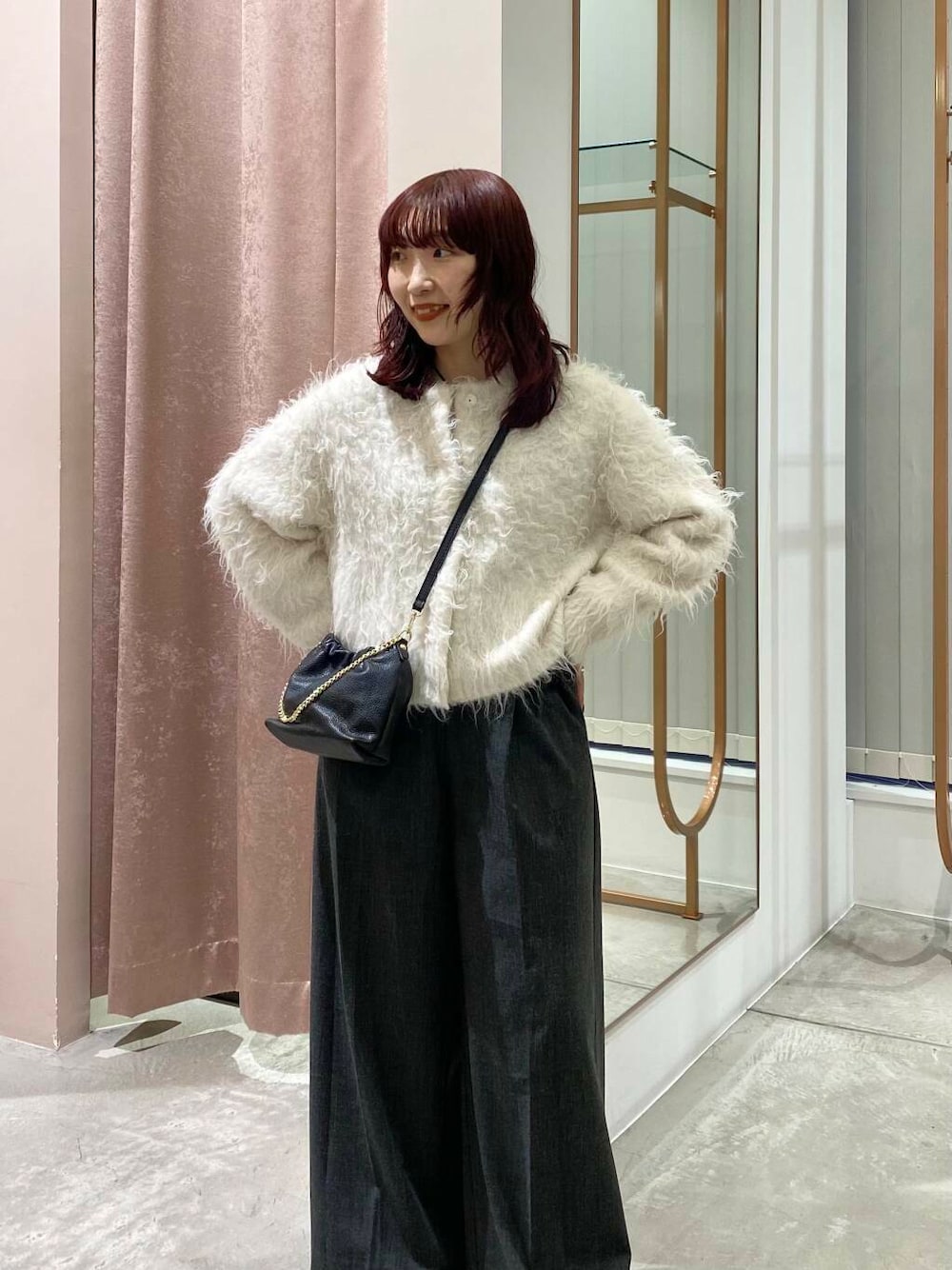 シャギー特有のふわふわとした素材が可愛いカーディガンです。