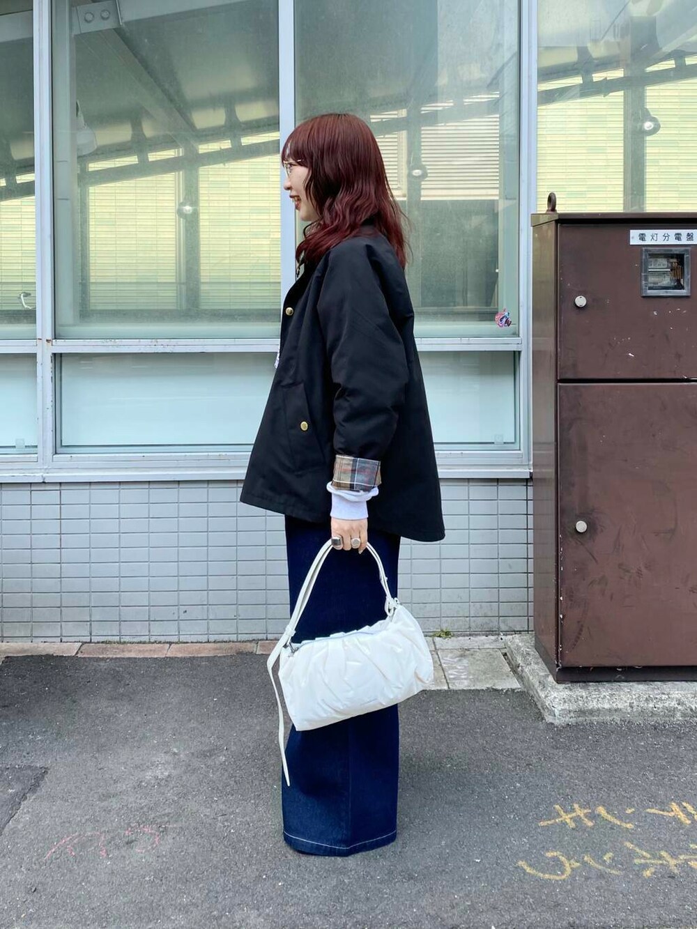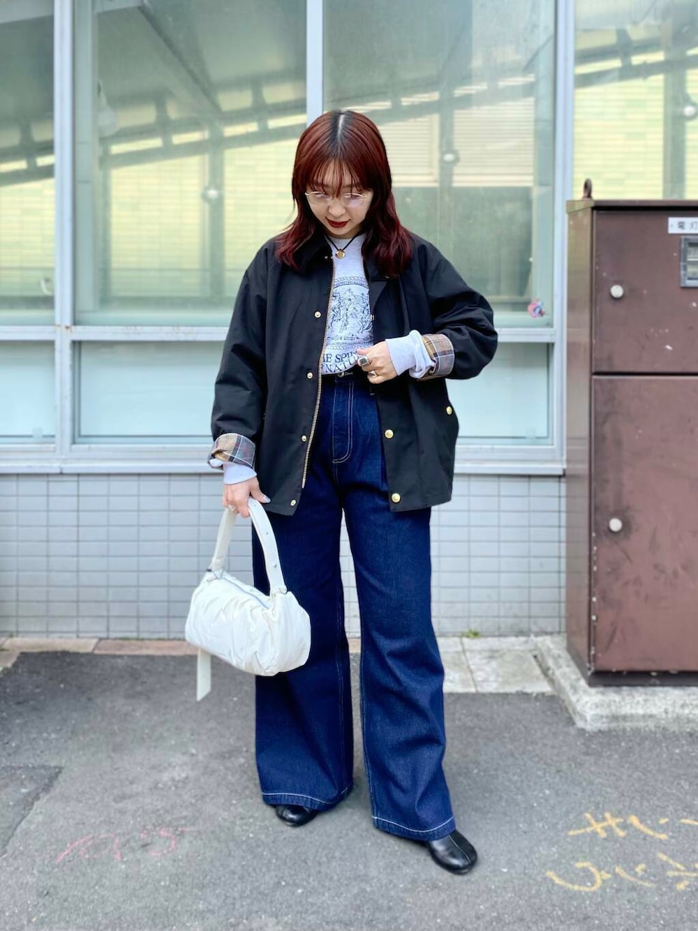 後ろ下がりのゆったりシルエットで合わせやすいです◎